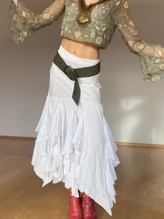 Breiter Wildleder-Optik Gürtel in khaki mit Verzierung, low waist, Onesize