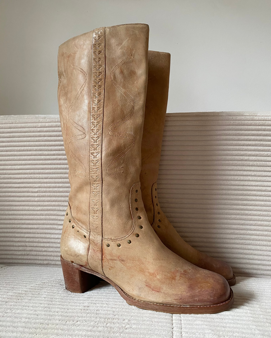 Buffalo derbe retro Lederstiefel hellbraun mit Verzierung, Gr. 40