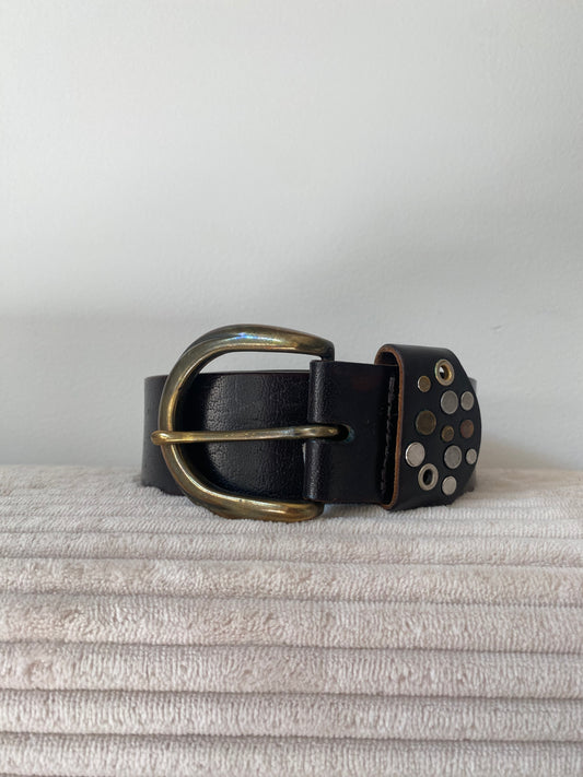 Braune hohe Lederstiefel mit Verzierung und Schnalle, Gr. 38
