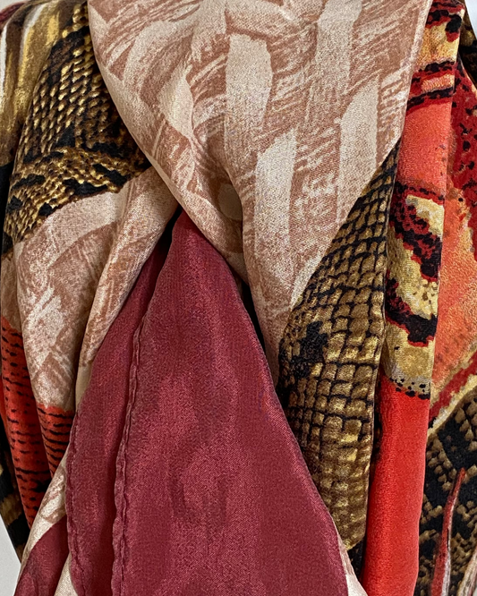 Bunt gemustertes Seidentuch quadratisch bordeauxrot gold
