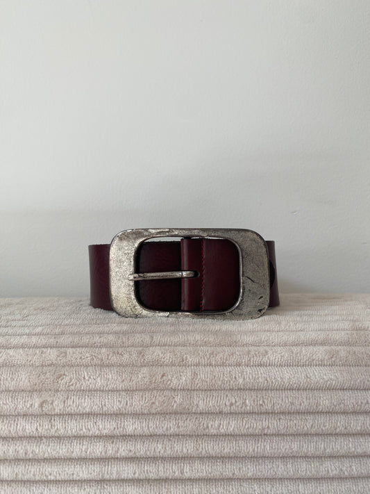 Bordeaux Echtledergürtel mit breiter Silber-Metall-Schnalle, TW 85