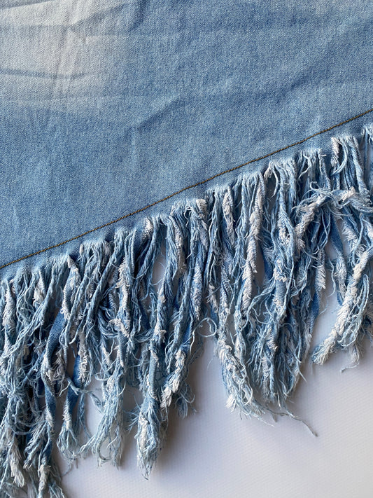 Asymmetrischer Jeansrock Midi mit Fransen, Langnese Collection Retro, S