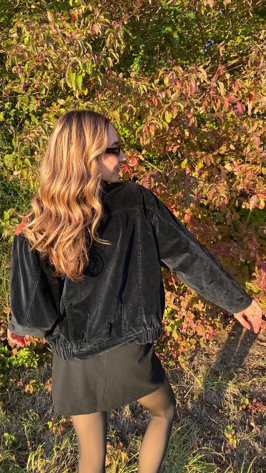 Samt Blazer-Bomberjacke 90er Jahre in schwarz weinrot, S