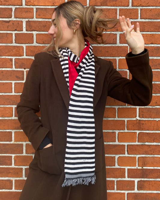 Gestreifter Schal in schwarz-weiß mit rot, schmal und lang