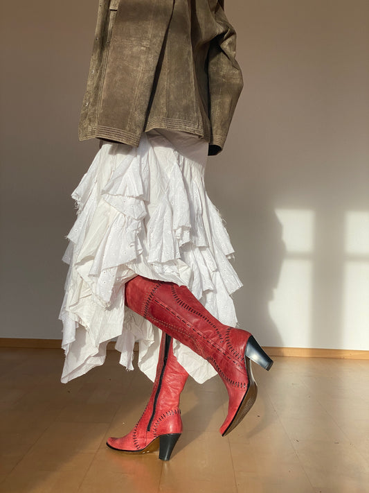 Traumhafter französischer Vintage Maxirock Zipfel Spitze Layering ruffled, S,M