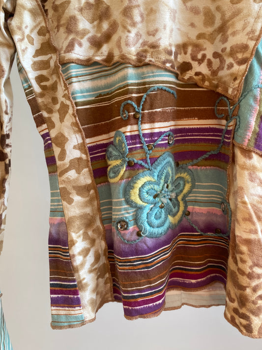 Traumhaftes multicolor verziertes Longsleeve Trompetenärmel, S