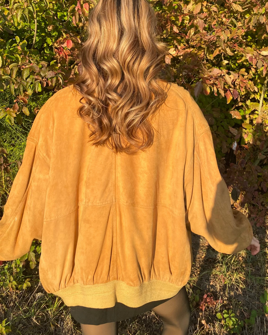 Wildleder Jacke 90er in hellbraun senfgelb mit Taschen, oversize S,M,L