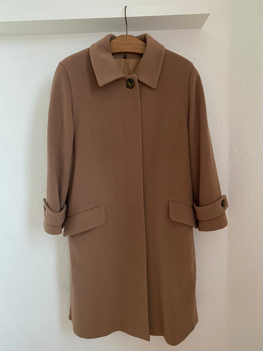 Pre-loved Retro Kaschmir Schurwolle Mantel in hellbraun, S,M