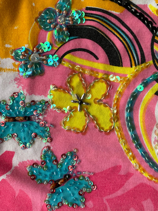 Miss Sixty y2k Top bunt mit Pailletten, florales multicolor Muster, S, M