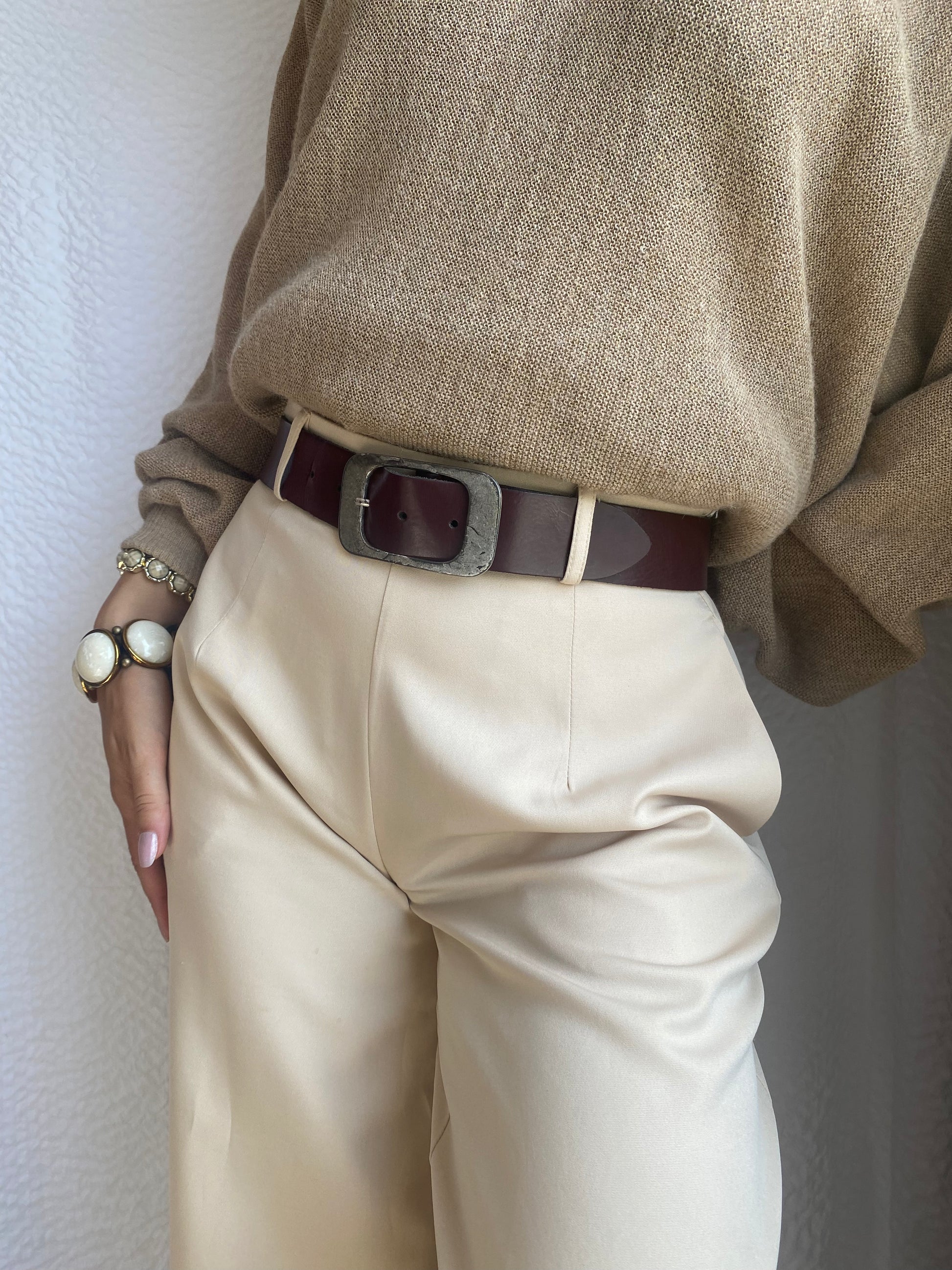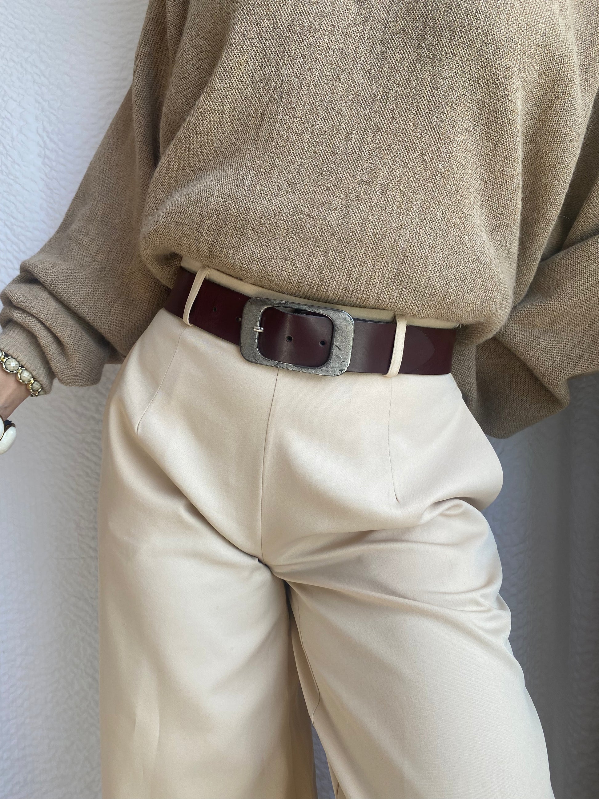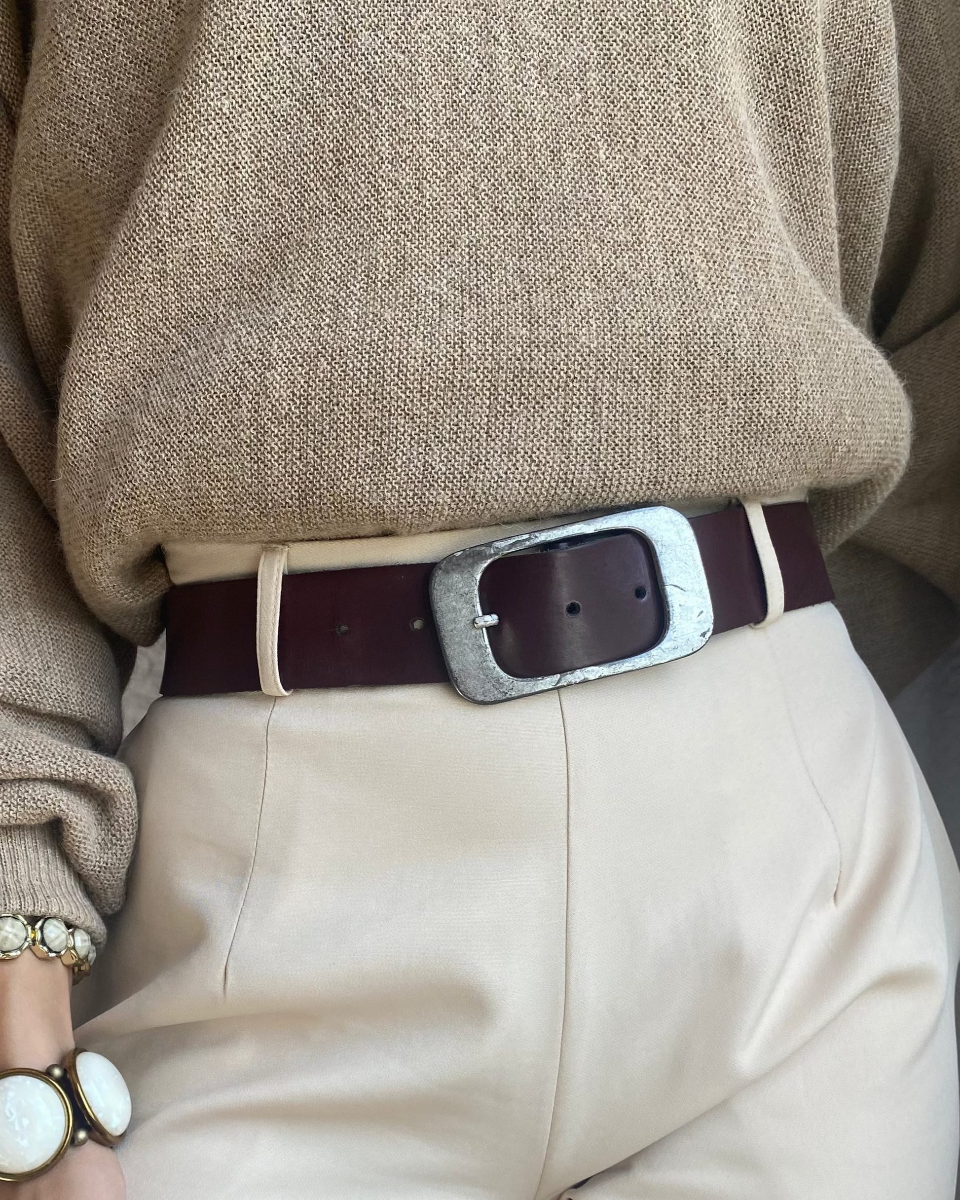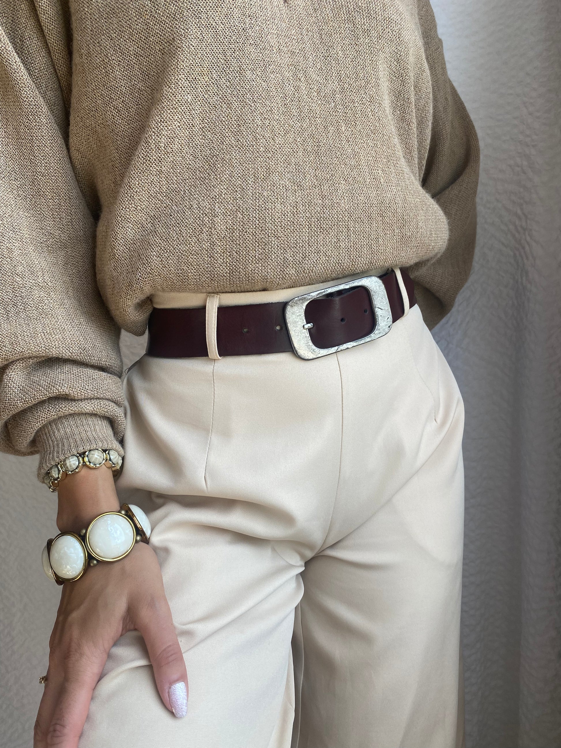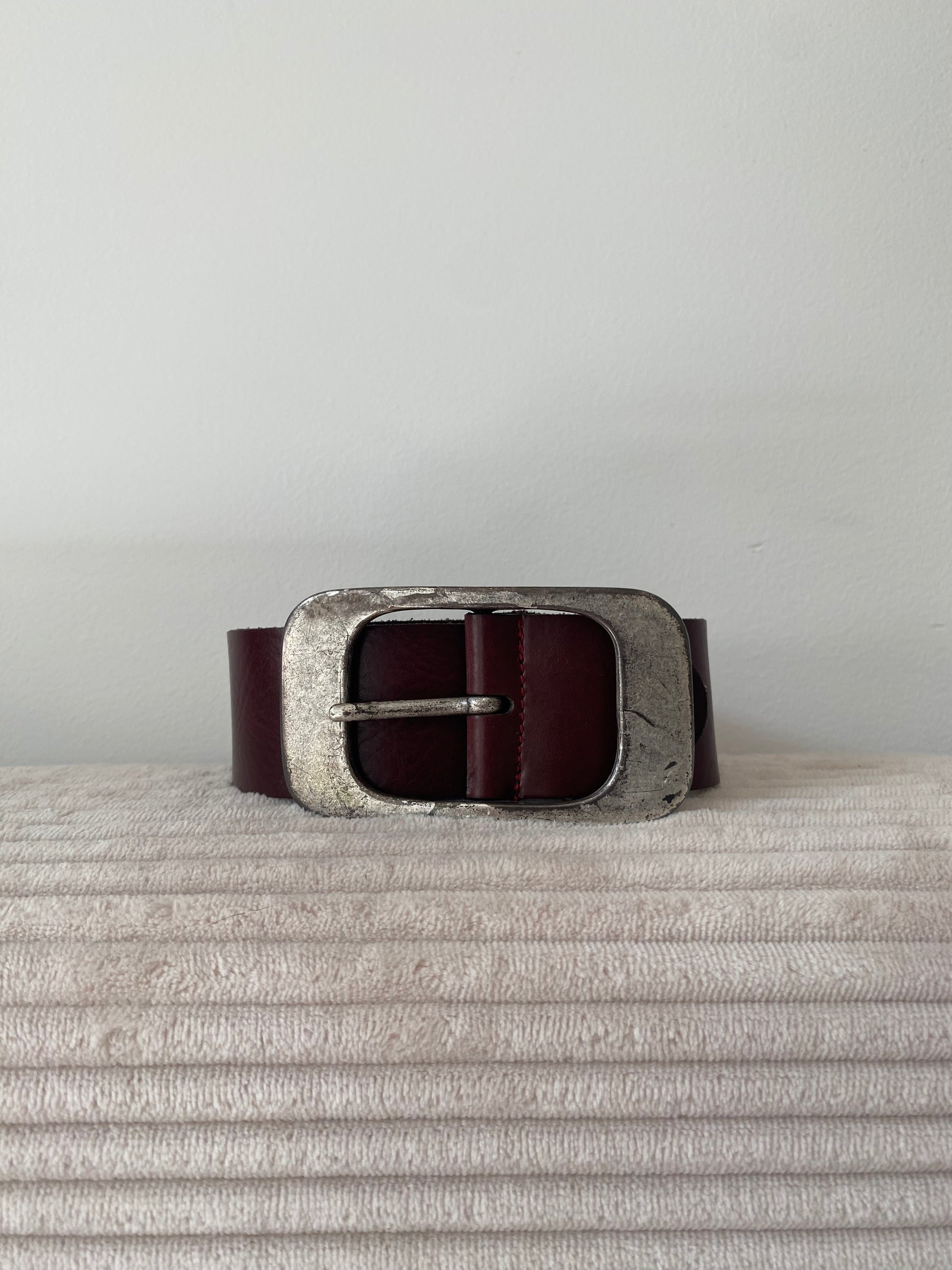 Bordeaux Echtledergürtel mit breiter Silber-Metall-Schnalle, TW 85
