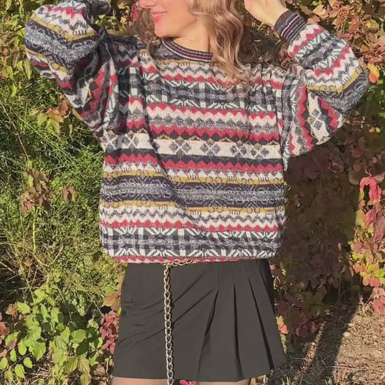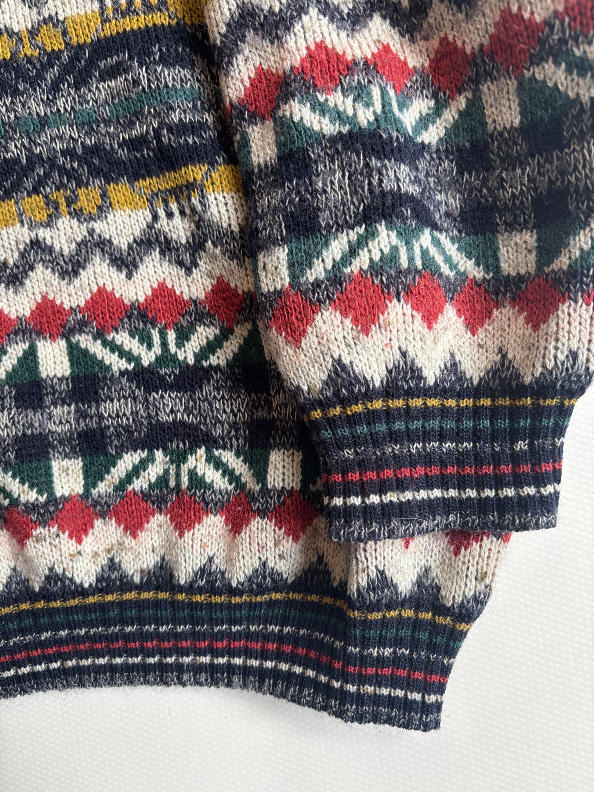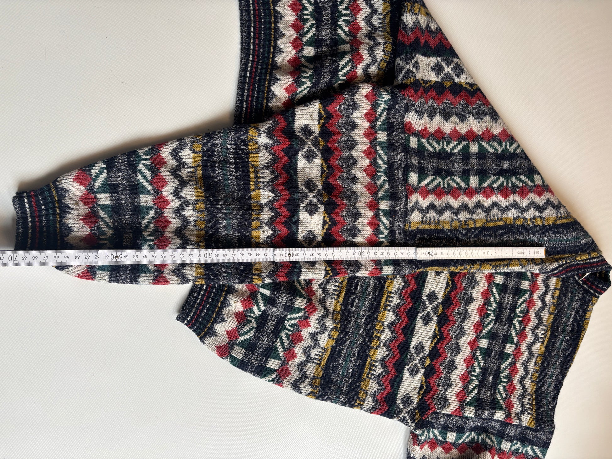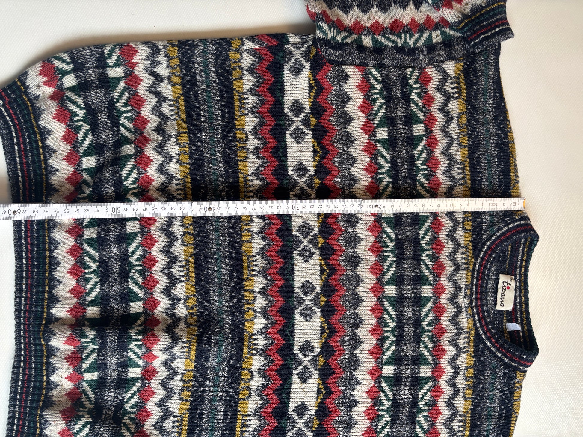 Bunt gemusterter retro Strickpullover, geometrisches Muster multicolor, S,M,L