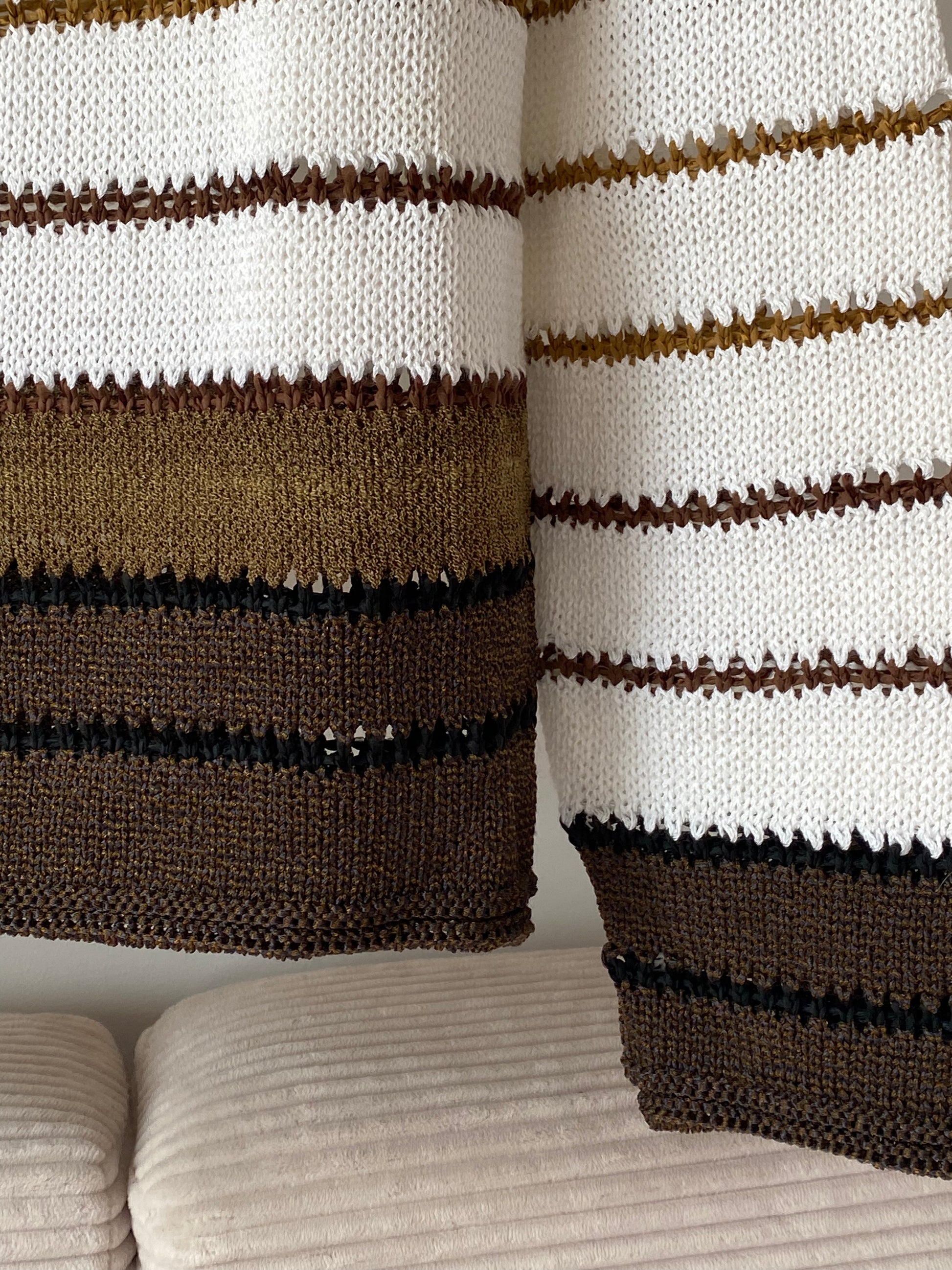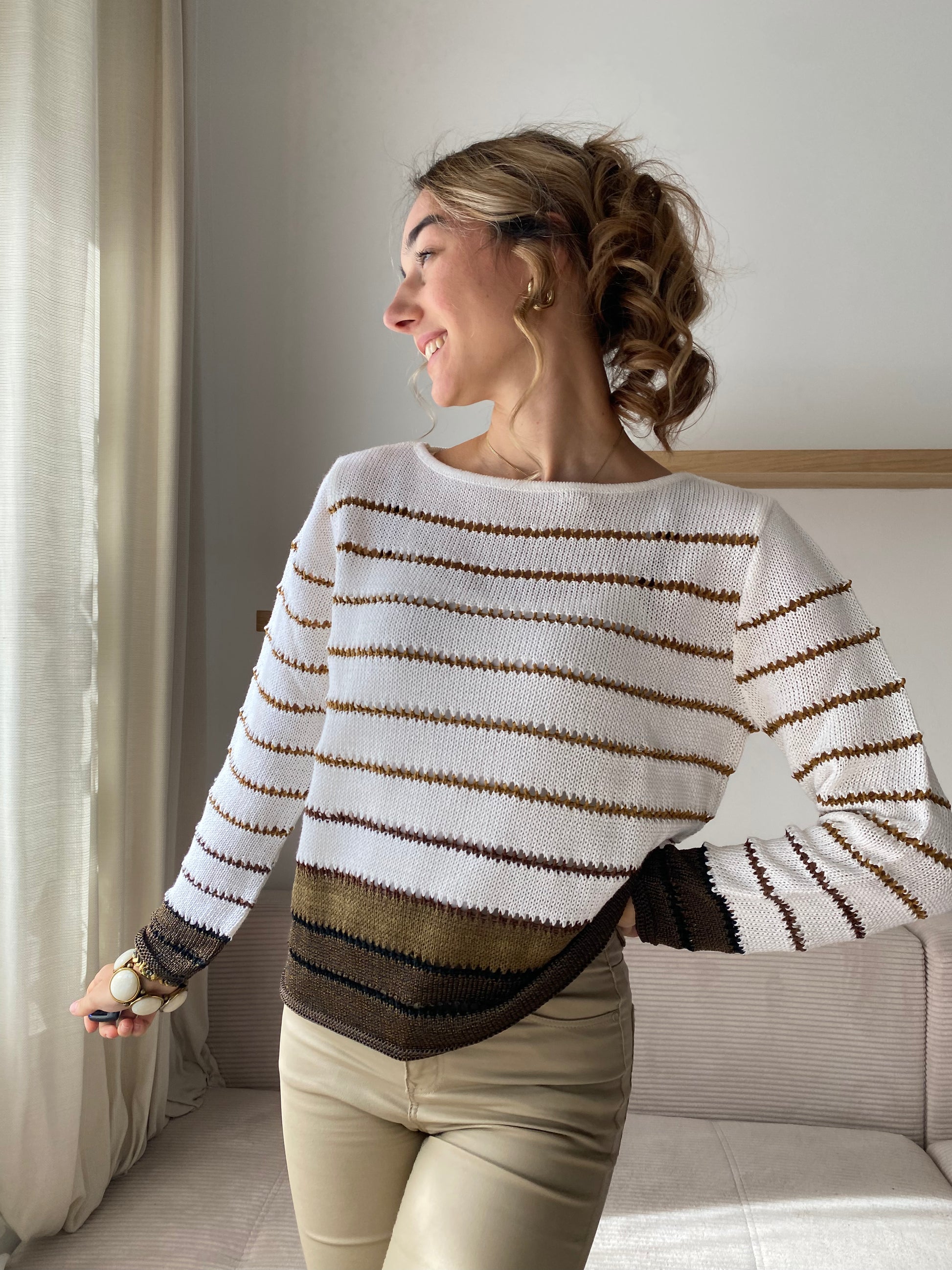 Carlo Colucci Grobstrick Pullover gestreift creme-braun, S, M