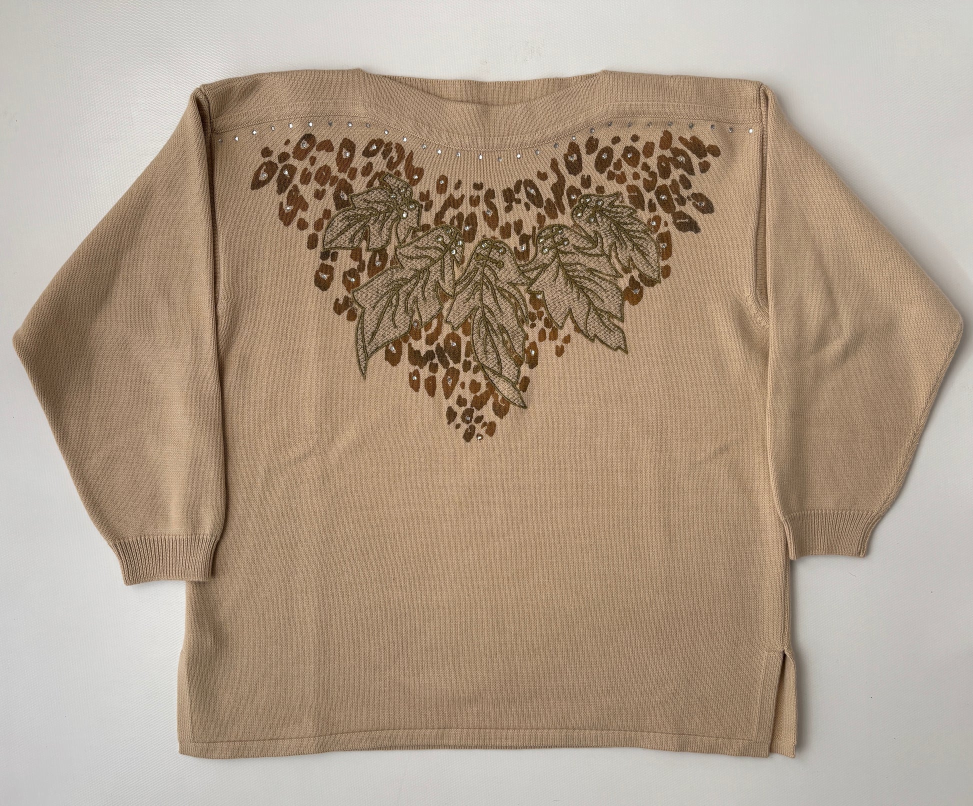 Retro Sweater in creme mit goldener Stickerei und Perlenverzierung
