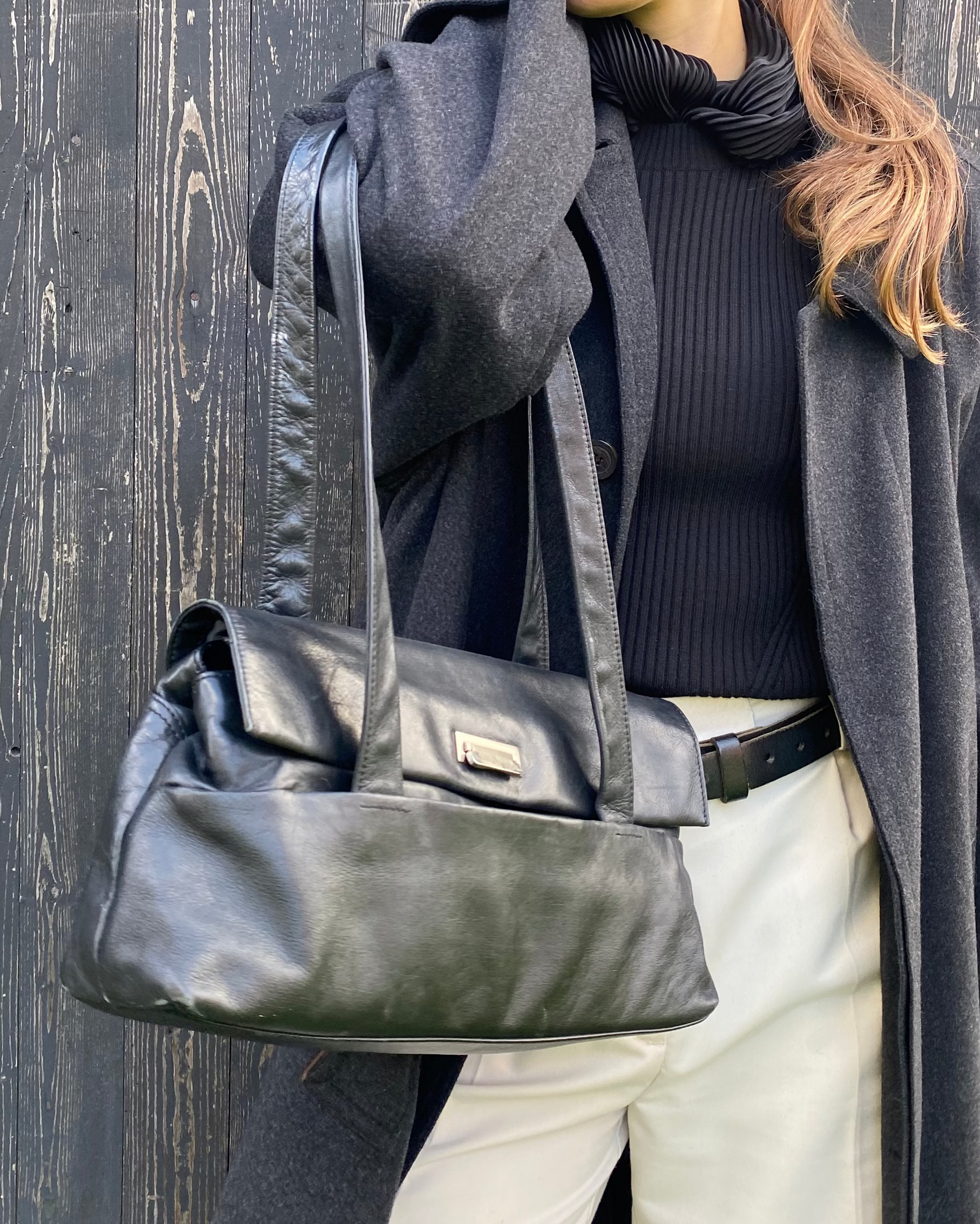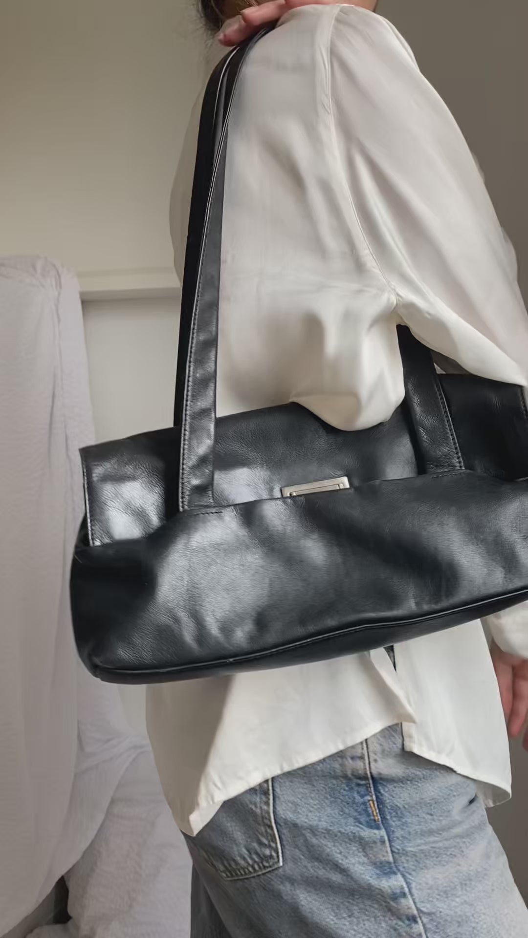 Elegante Echtleder Handtasche in schwarz im Baguette Stil