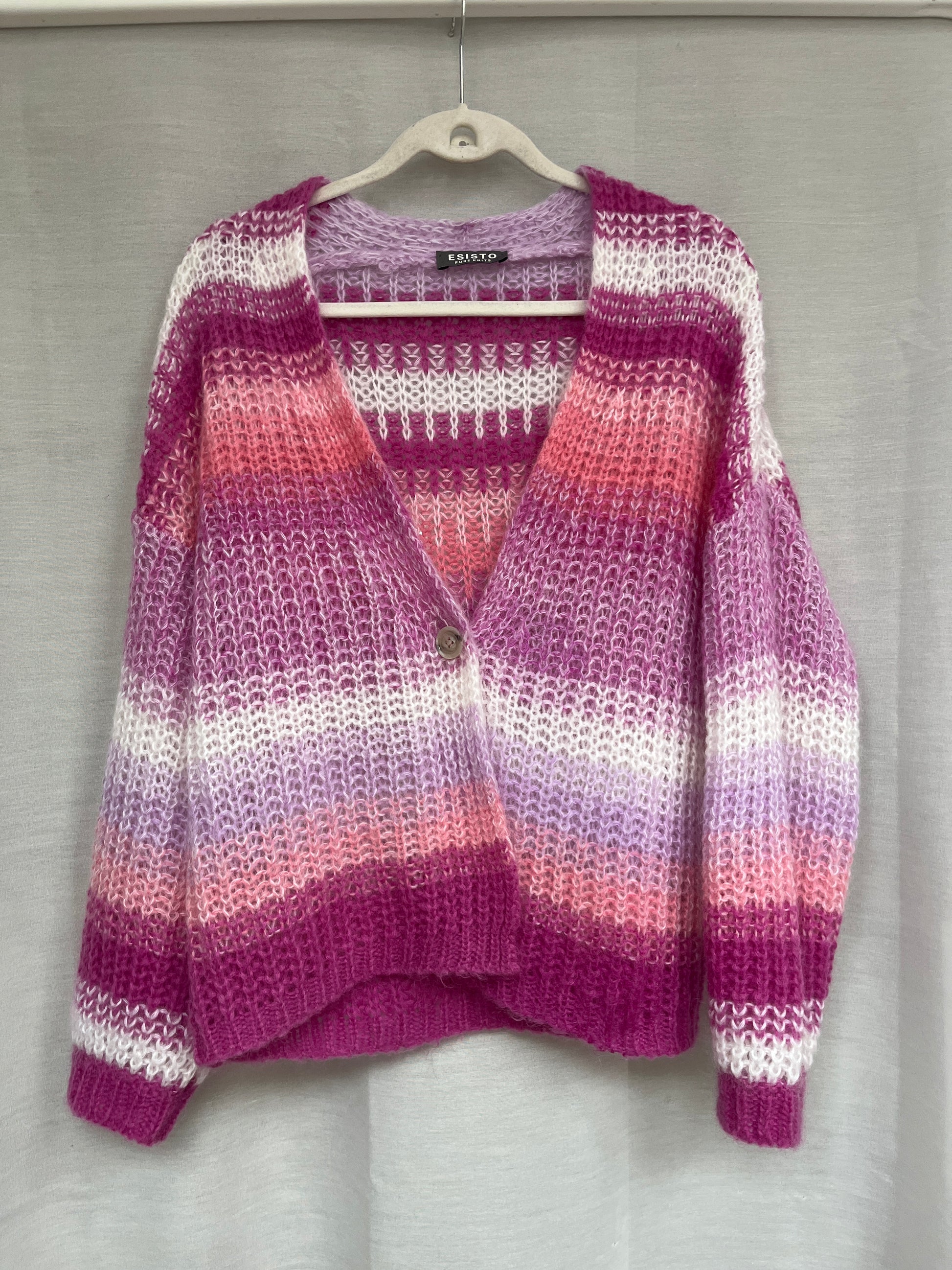 Esisto Strick Cardigan aus Mohair in pink rosa weiß gestreift Farbverlauf, M