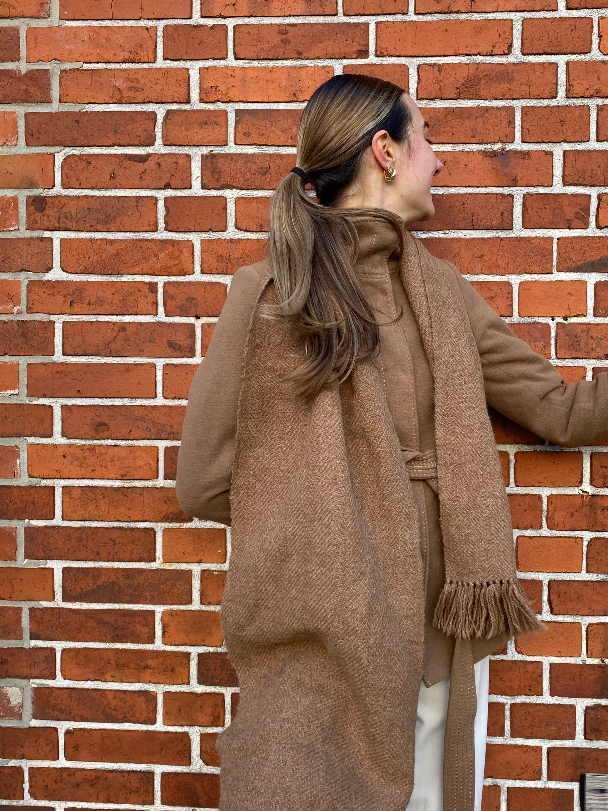 Hellbrauner dicker Schal mit Fransen, cozy scarf in camel braun