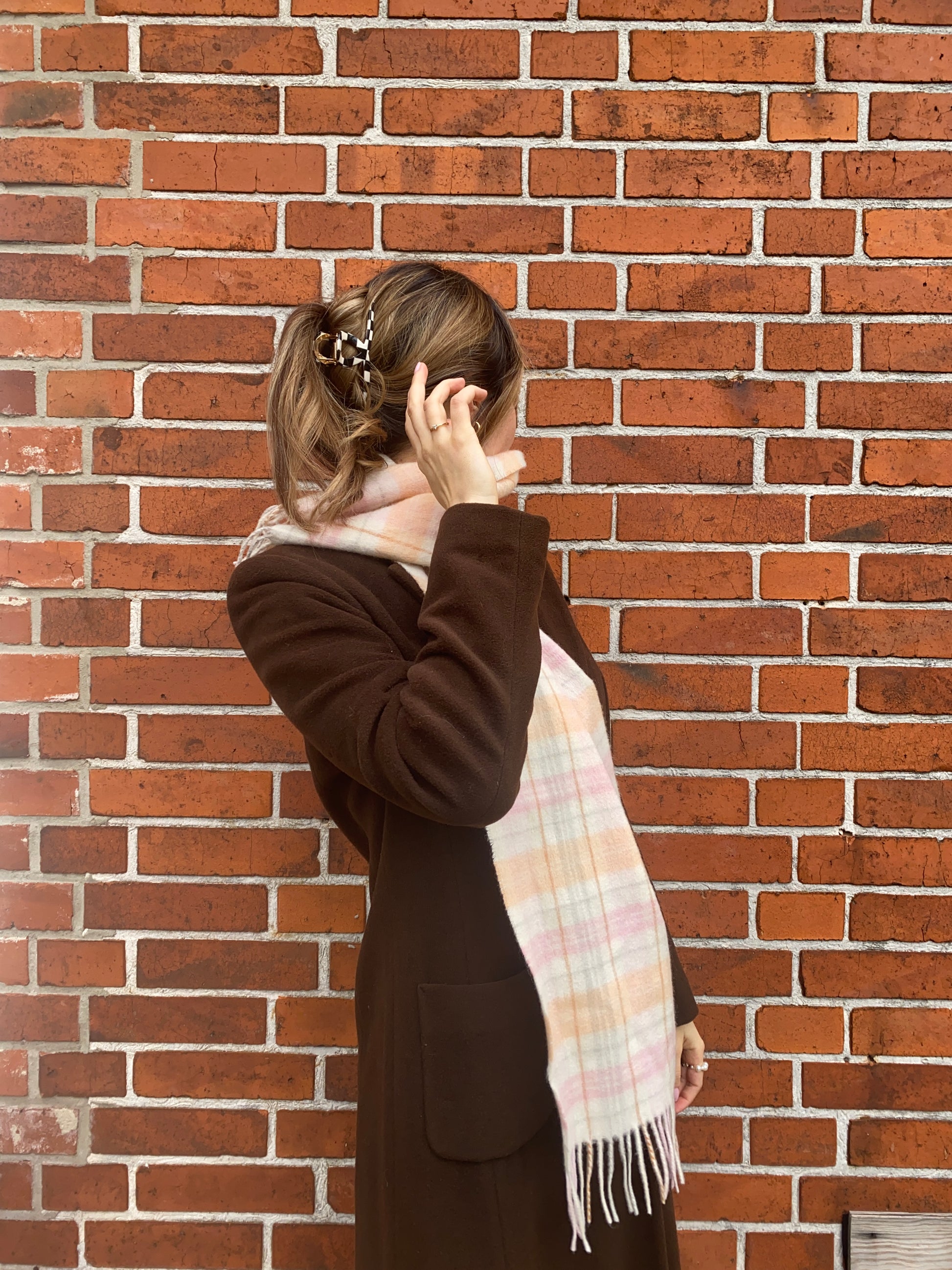 Gemütlicher, warmer Schal Rosa Creme Beige hell Weiß mit Karo Muster.