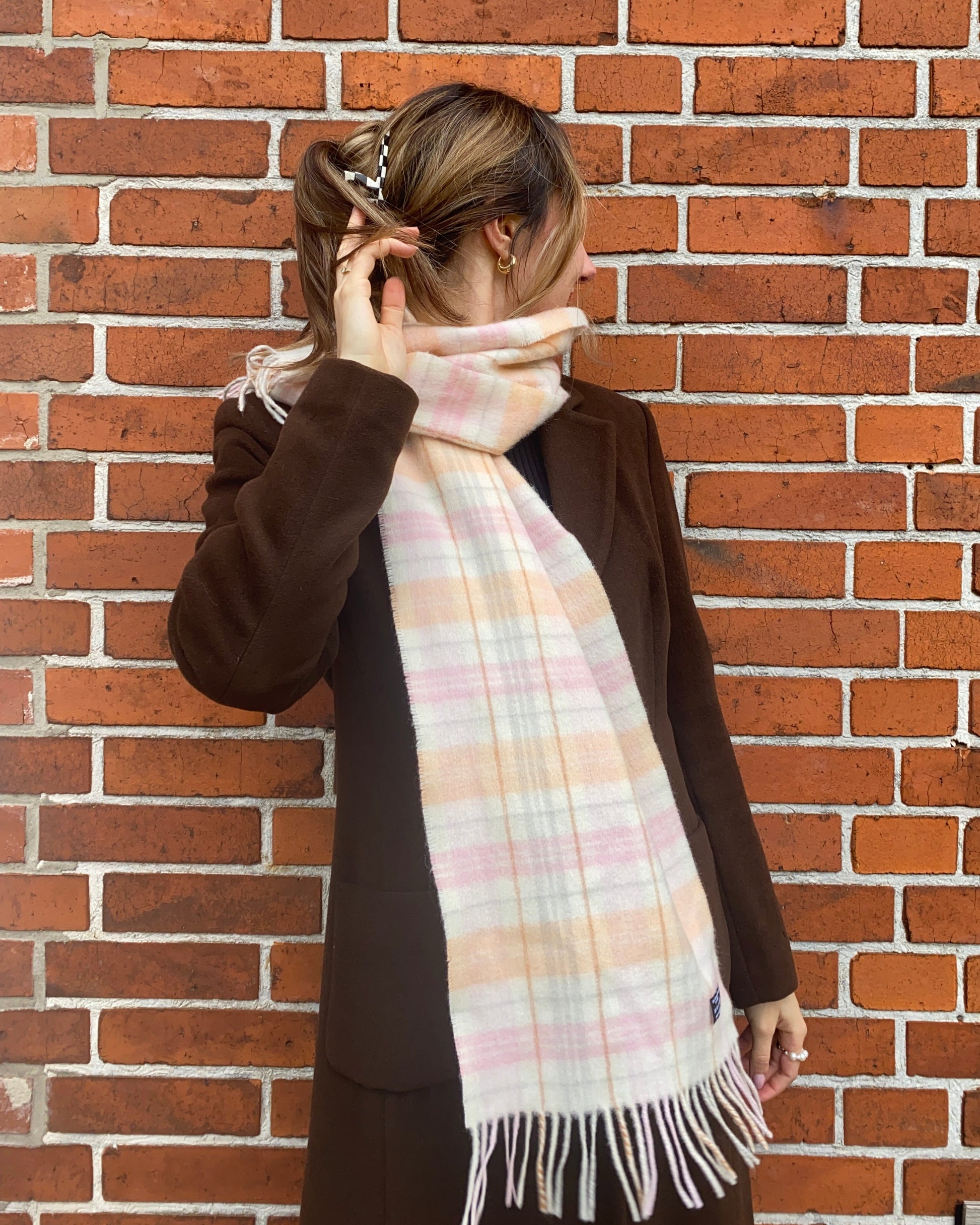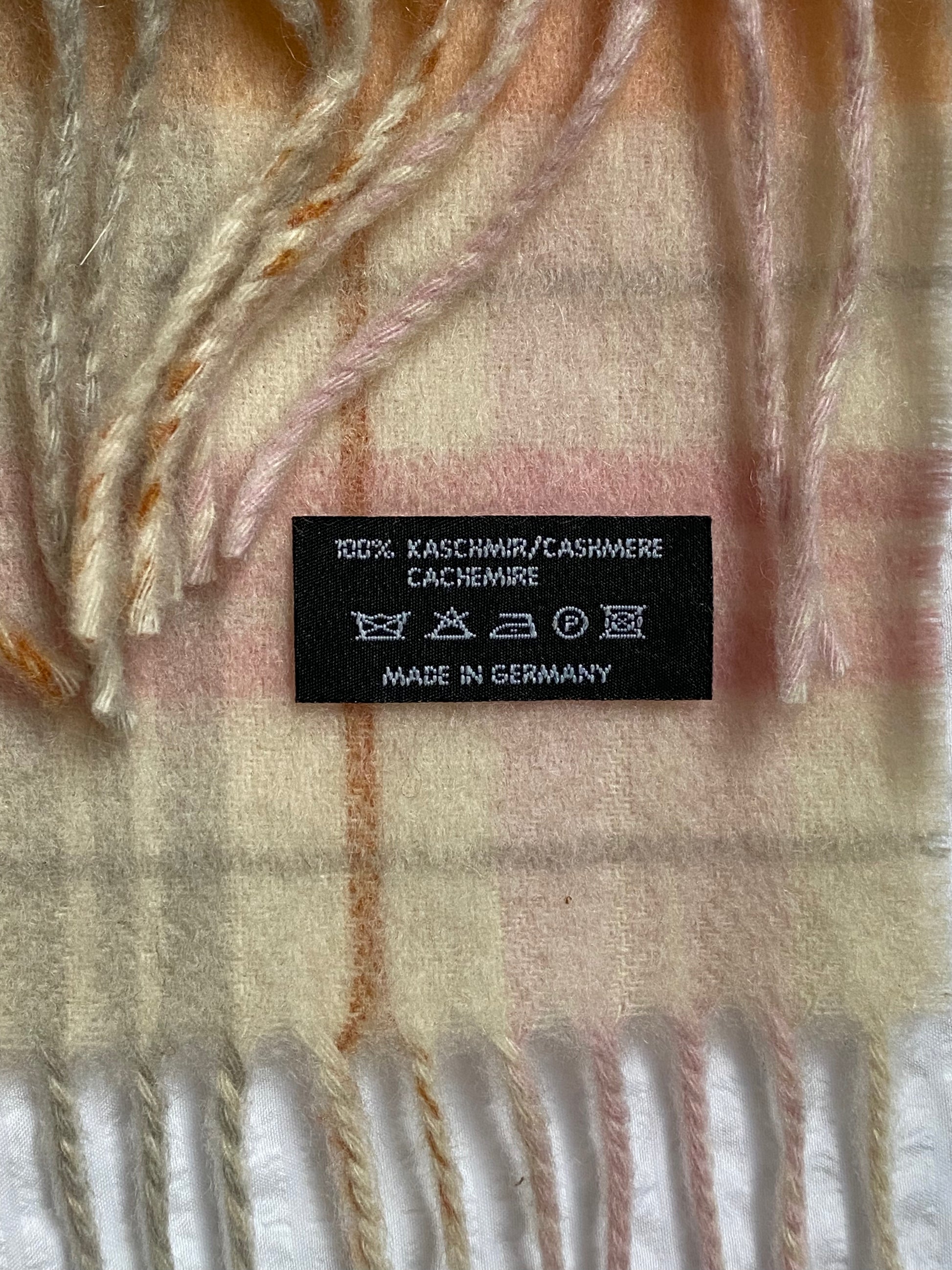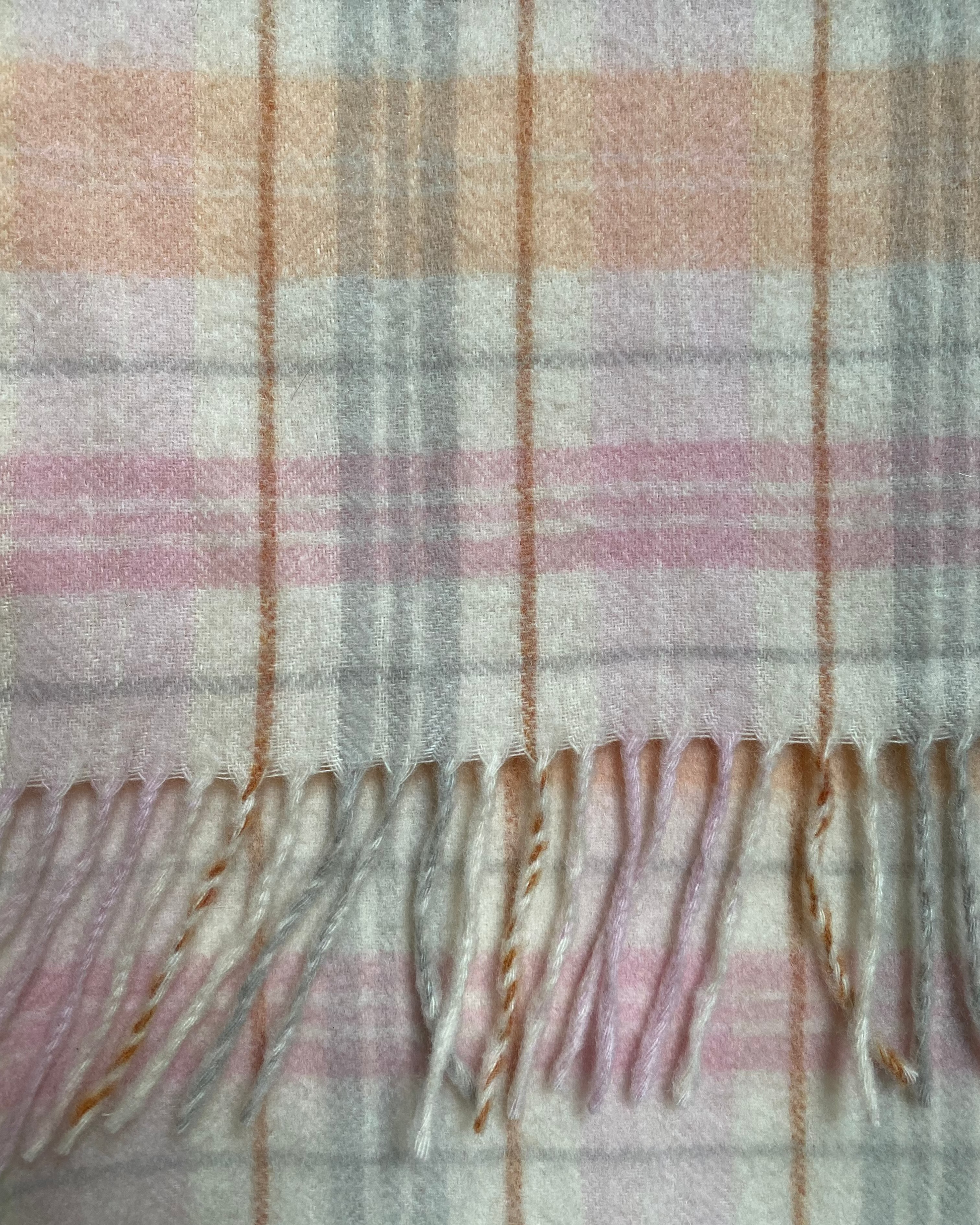 Weicher Kaschmir Schal in rosa weiß creme kariert mit Fransen