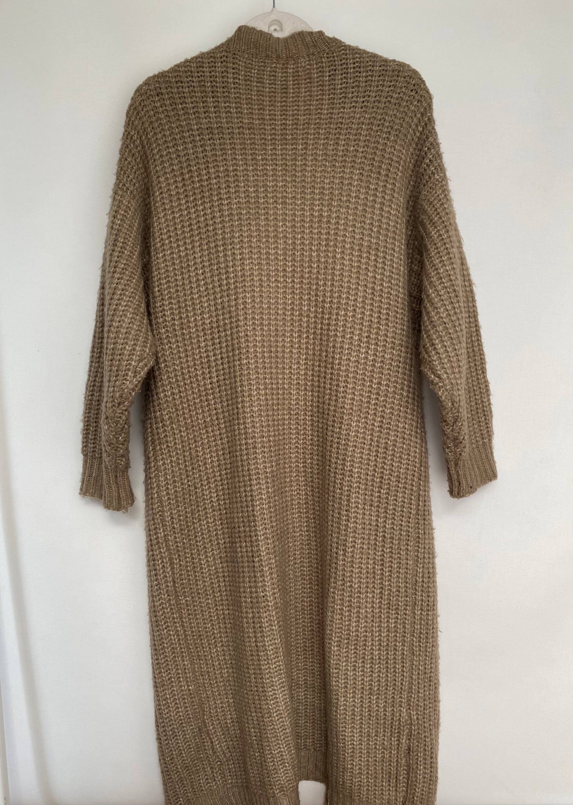 Langer Cardigan Strickjacke braun-grau taupe, Grobstrick, S,M,L,XL