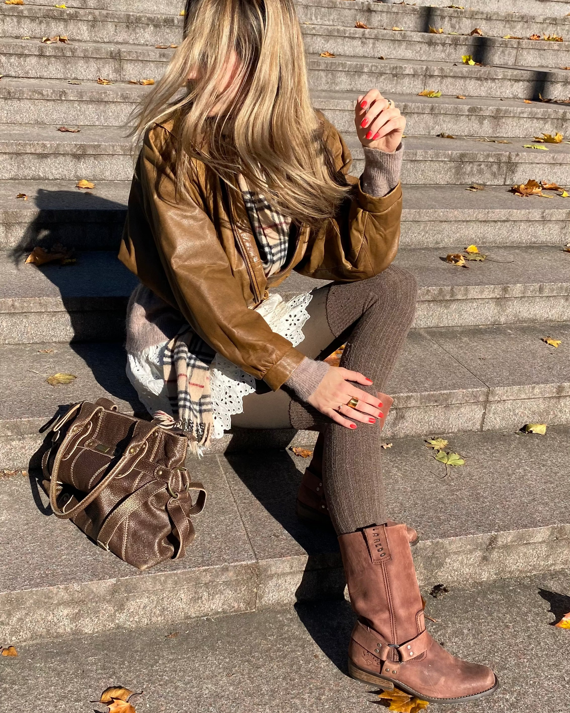 Western Lederstiefel in braun mit Riemen