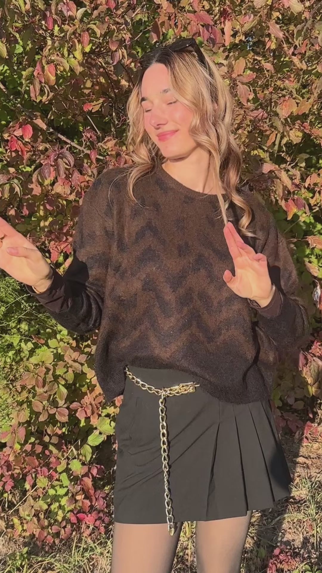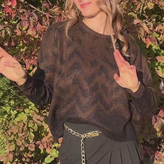 Luisa Cerano lockerer Mohair-Strickpullover in braun-schwarz, S,M,L
