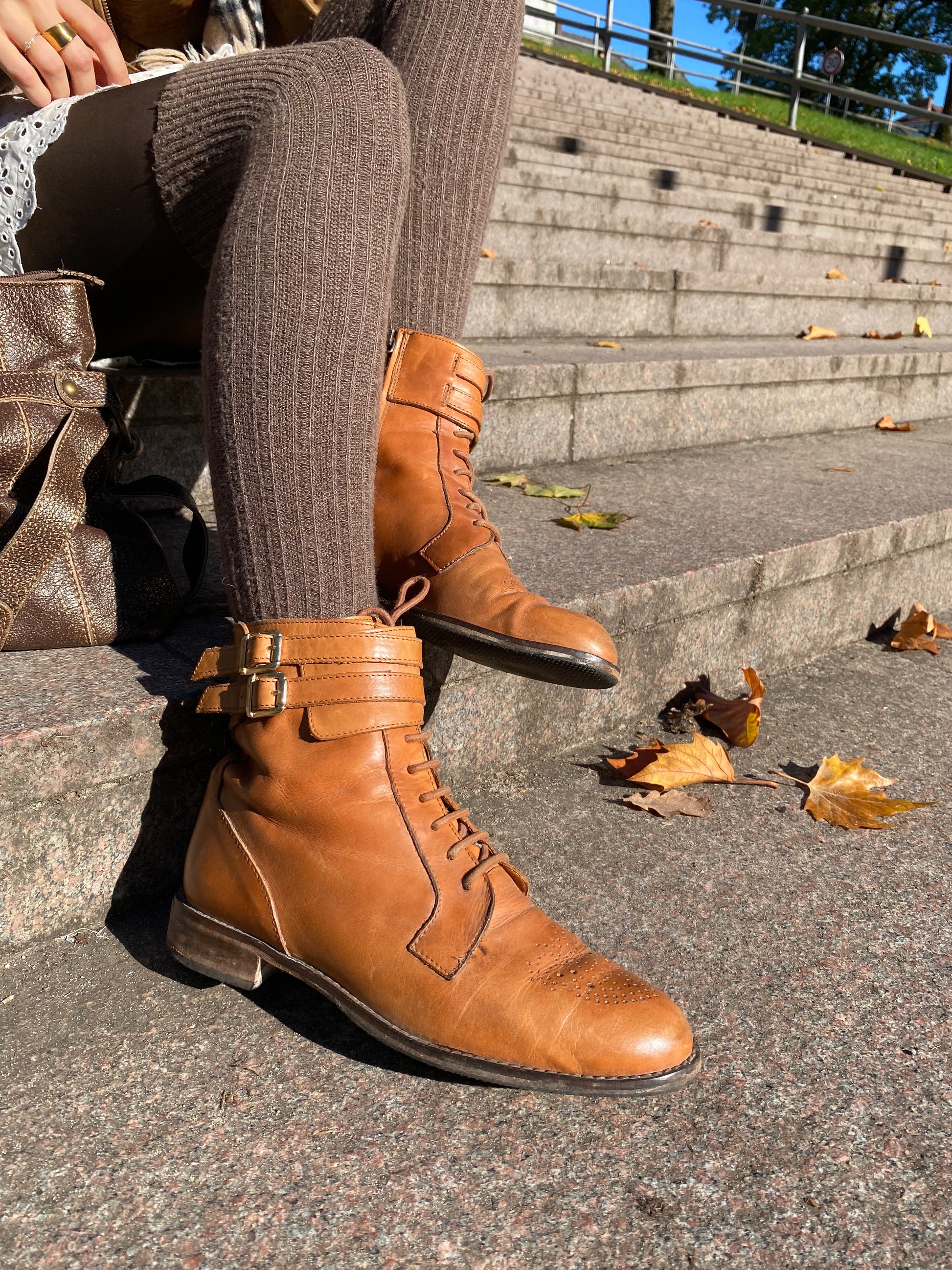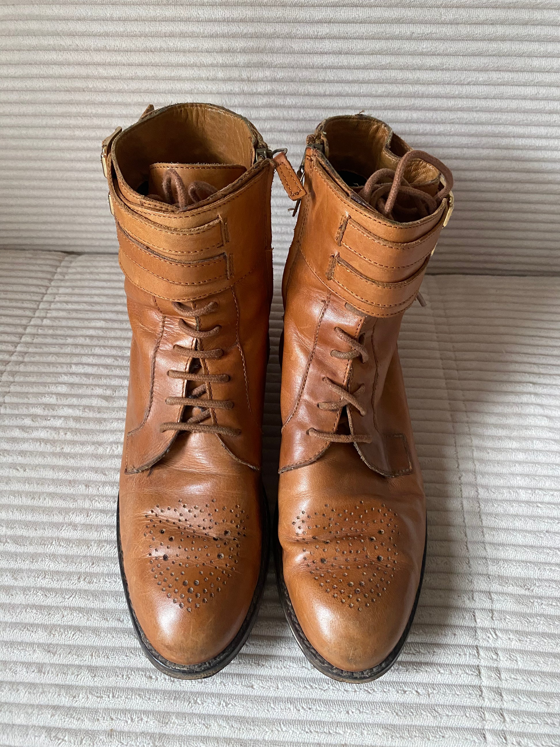 Massimo Dutti Brogue Stiefeletten cognac braun in Schnüroptik, Gr. 40