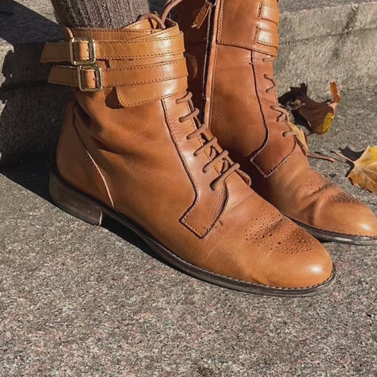 Lederstiefeletten in wunderschönem cognac - hellbraun in Größe 40