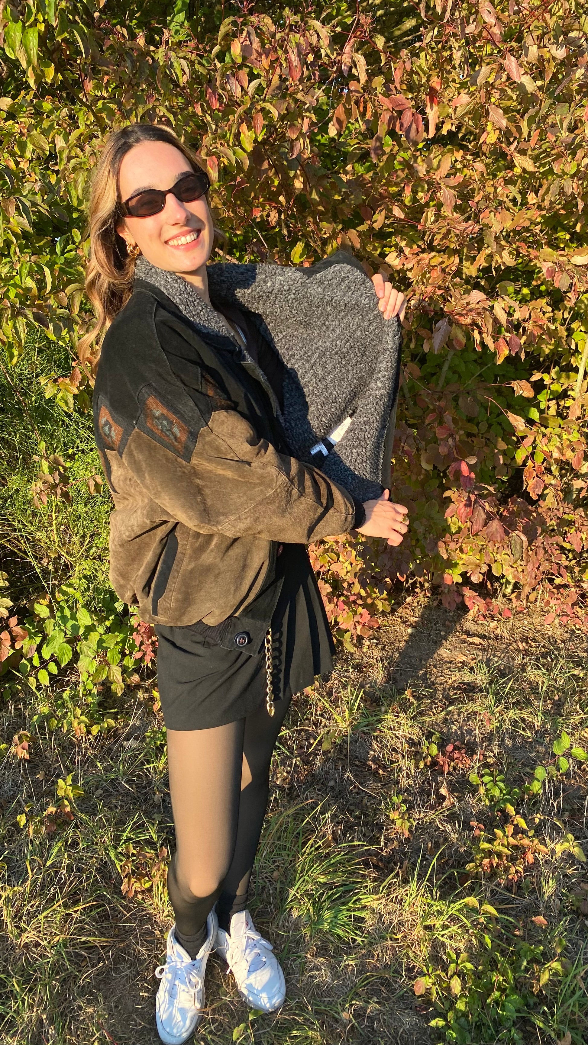 Traumhafte true vintage 80er Navajo-inspirierte Lederjacke – Braunes Wildleder mit Sherpa-Futter & Aztekenmuster