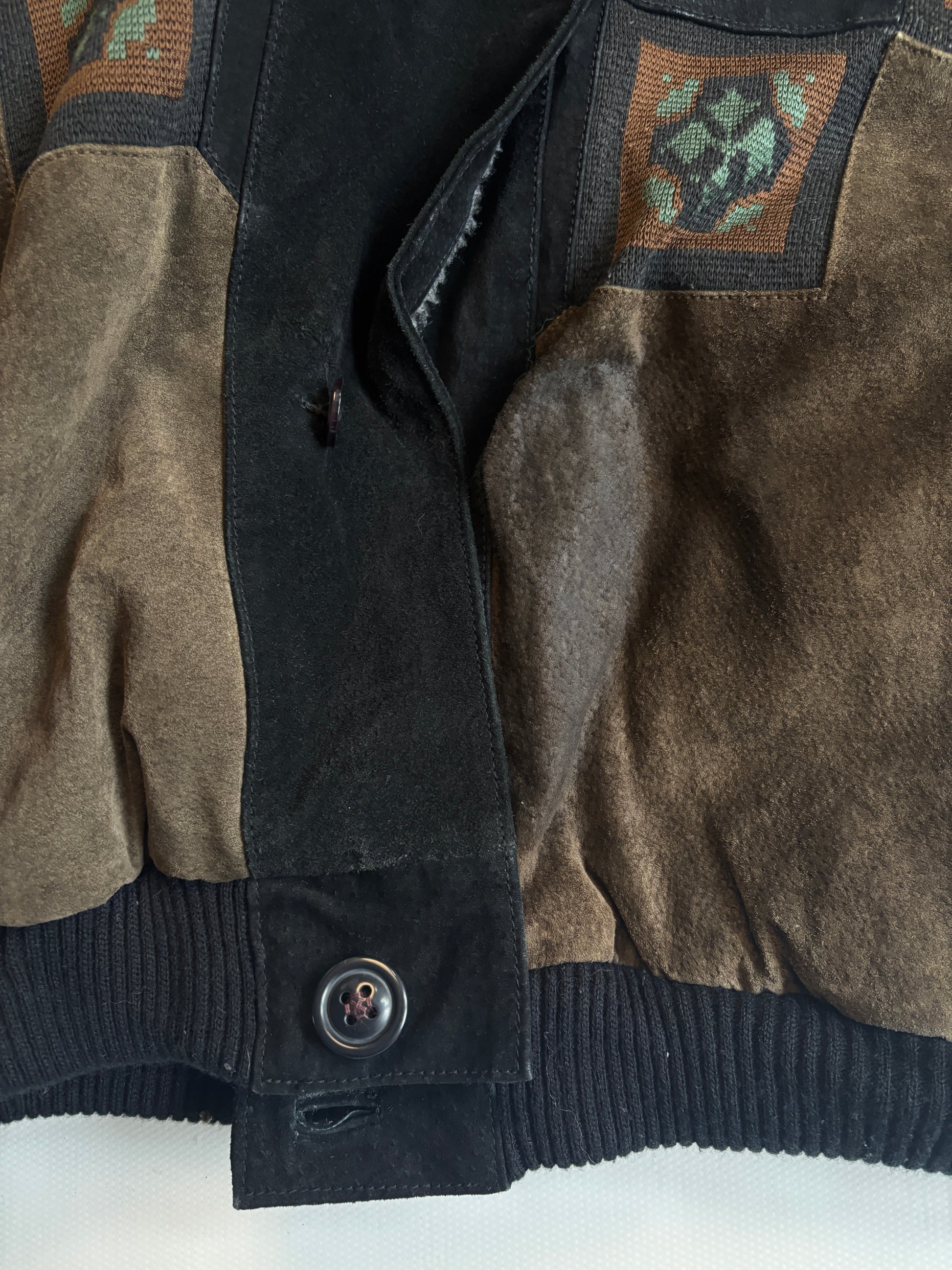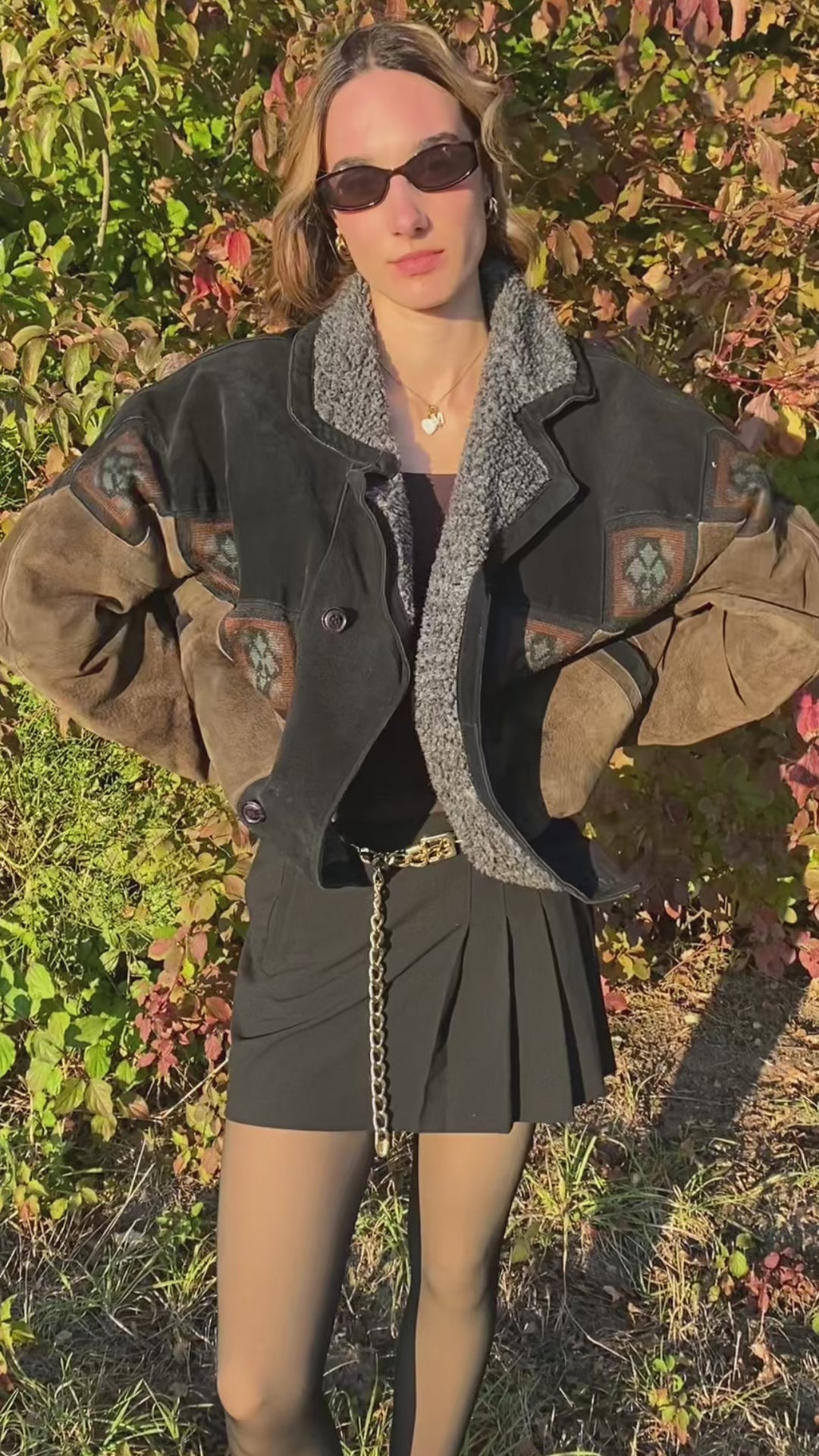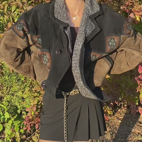 Aztec Navajo Suede Sherpa Wildleder Jacke mit Aztekenmuster, Vintage, S,M,L