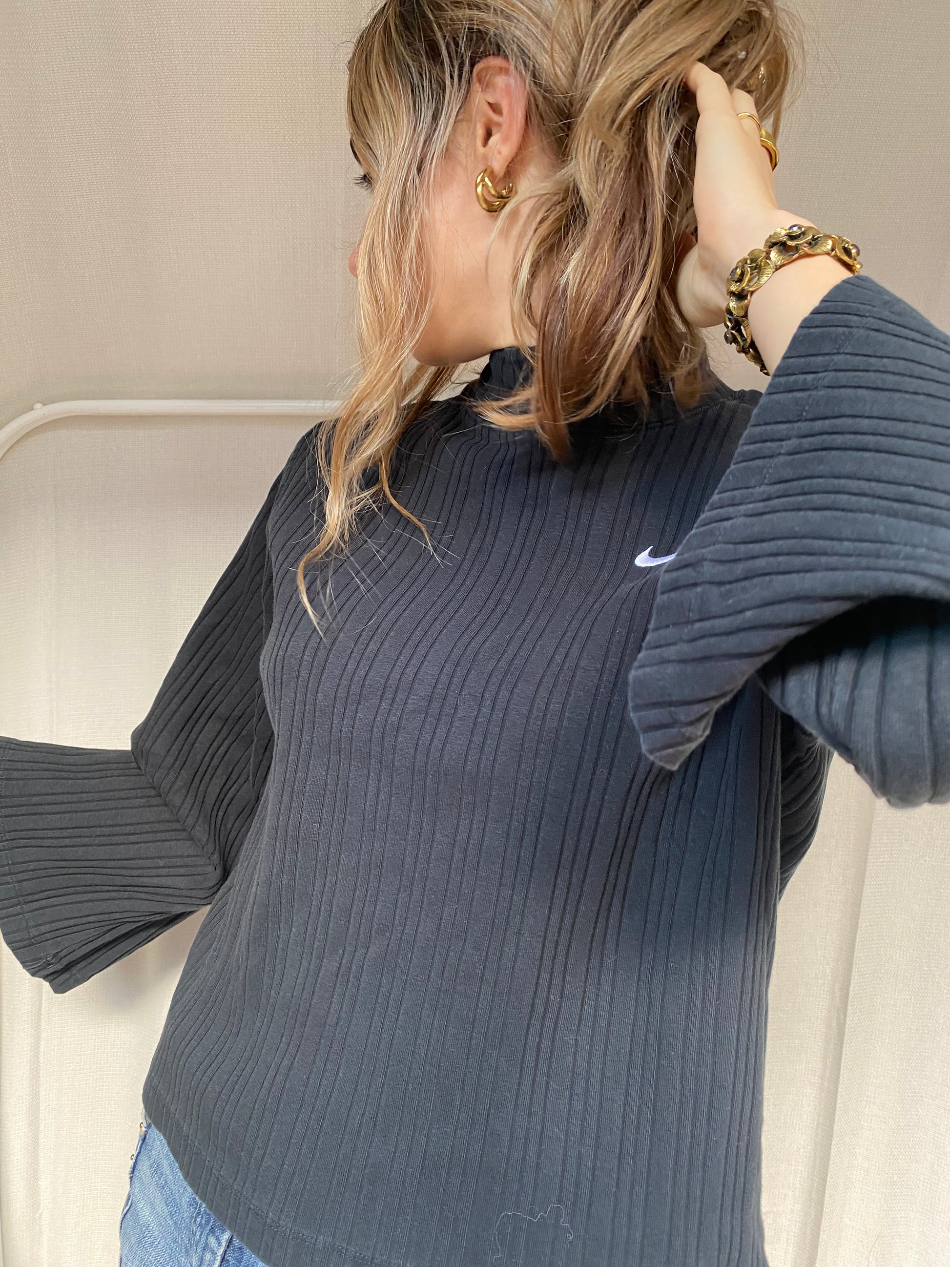 Lockeres Nike-Longsleeve Sweater Shirt mit weiten Trompeten Ärmeln in schwarz gerippt