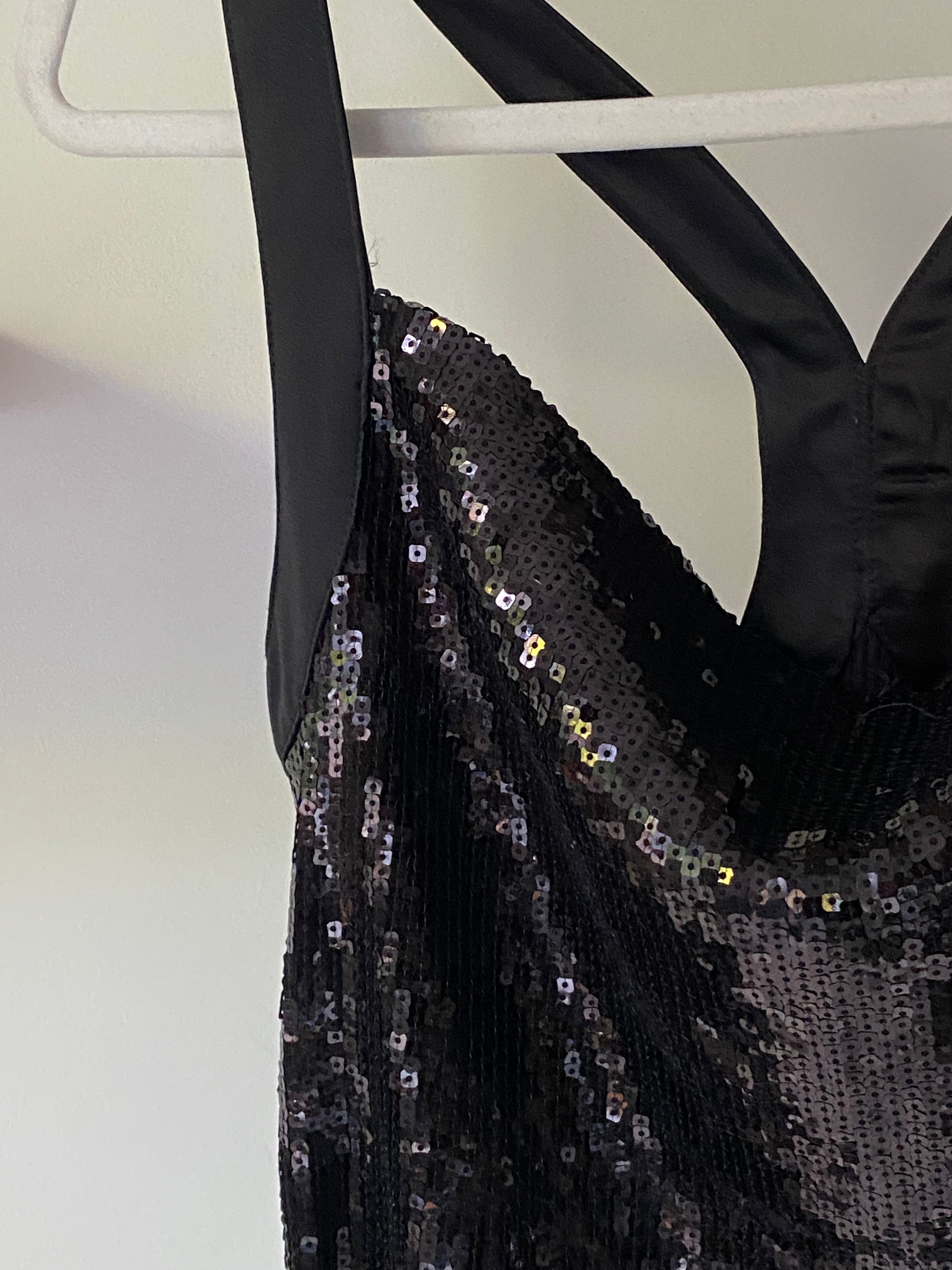Pailletten Glitzer Top schwarz, Cowl Neck Wasserfallausschnitt, S
