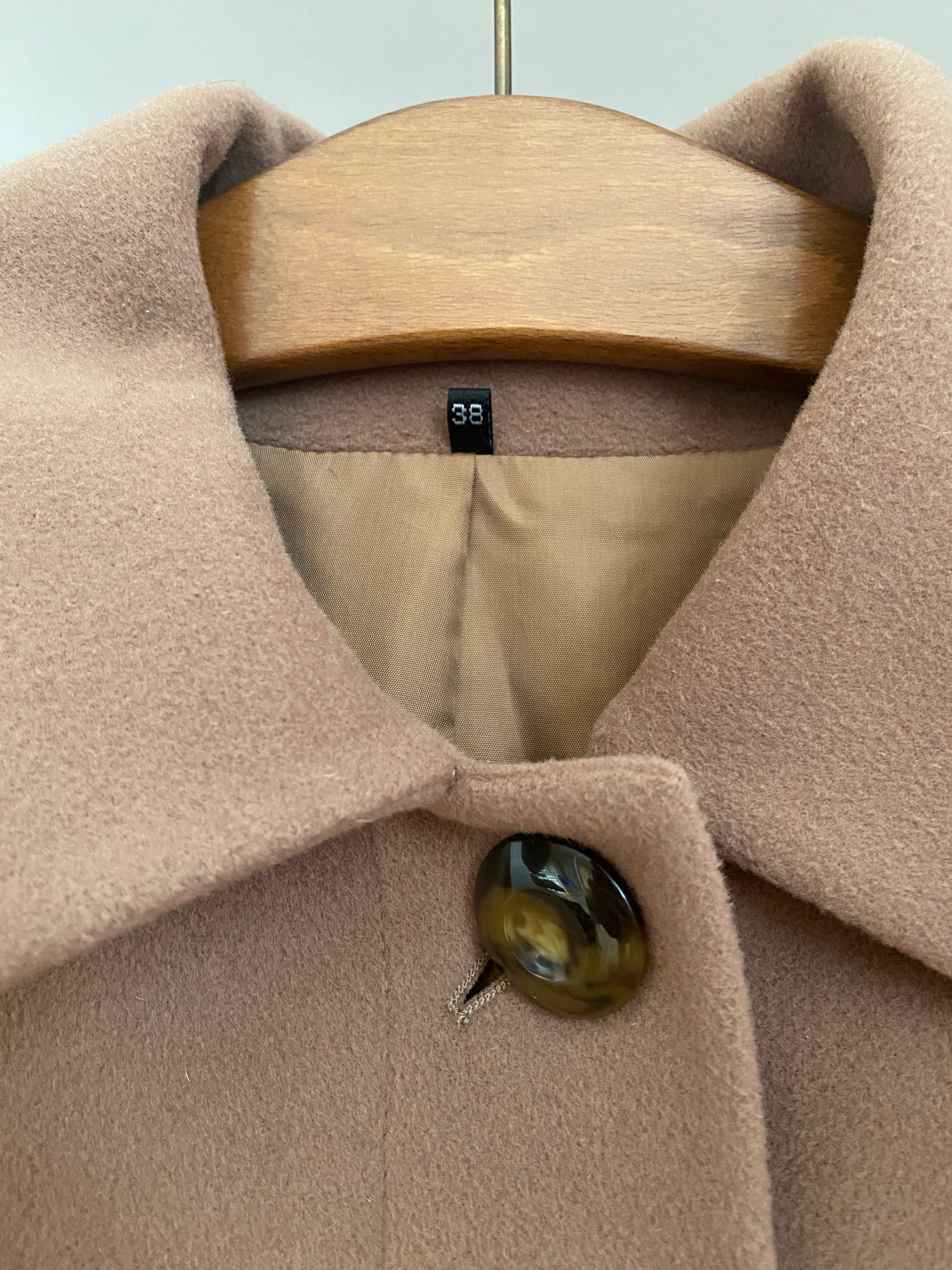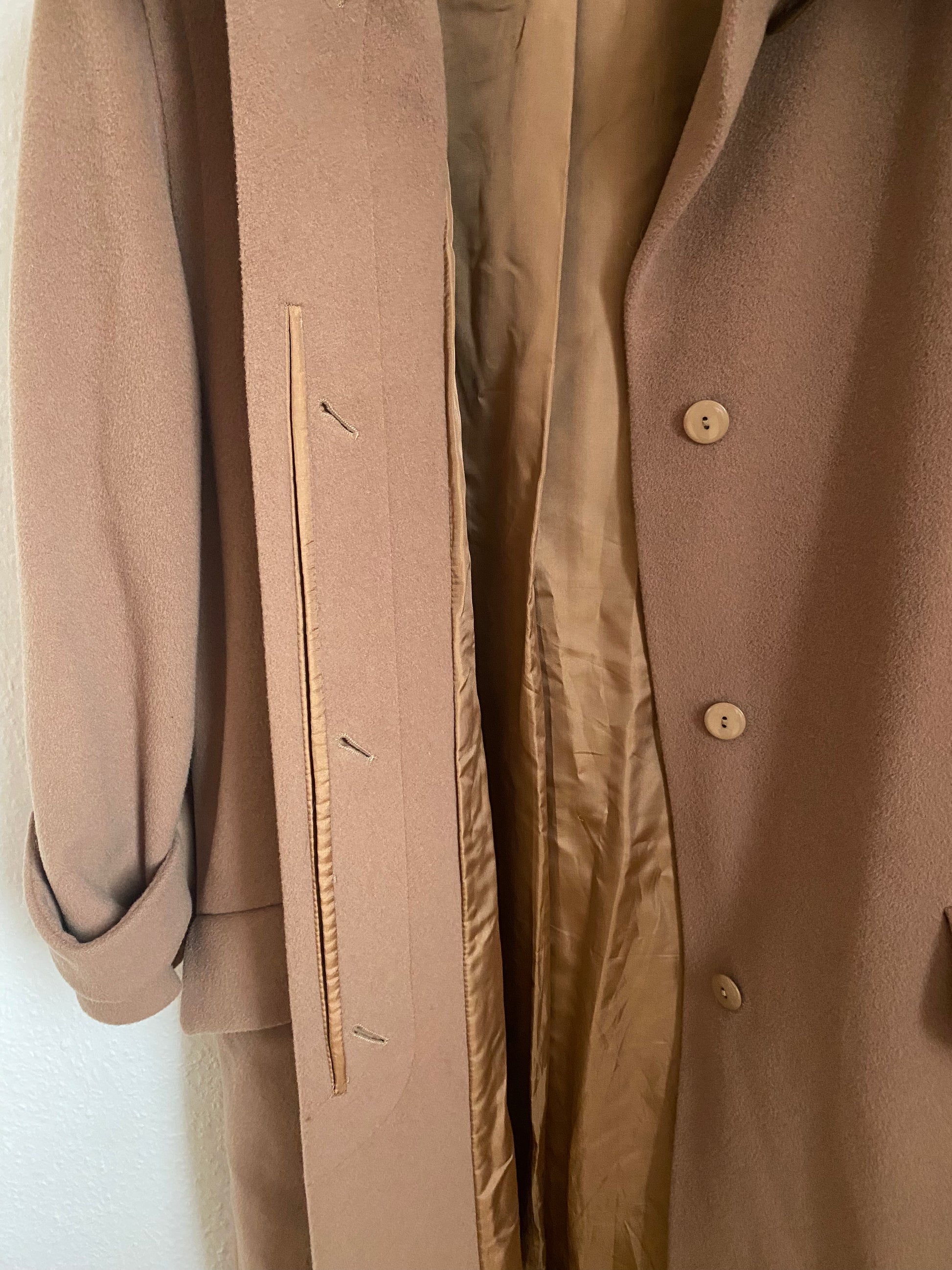 Pre-loved Retro Kaschmir Schurwolle Mantel in hellbraun, S,M