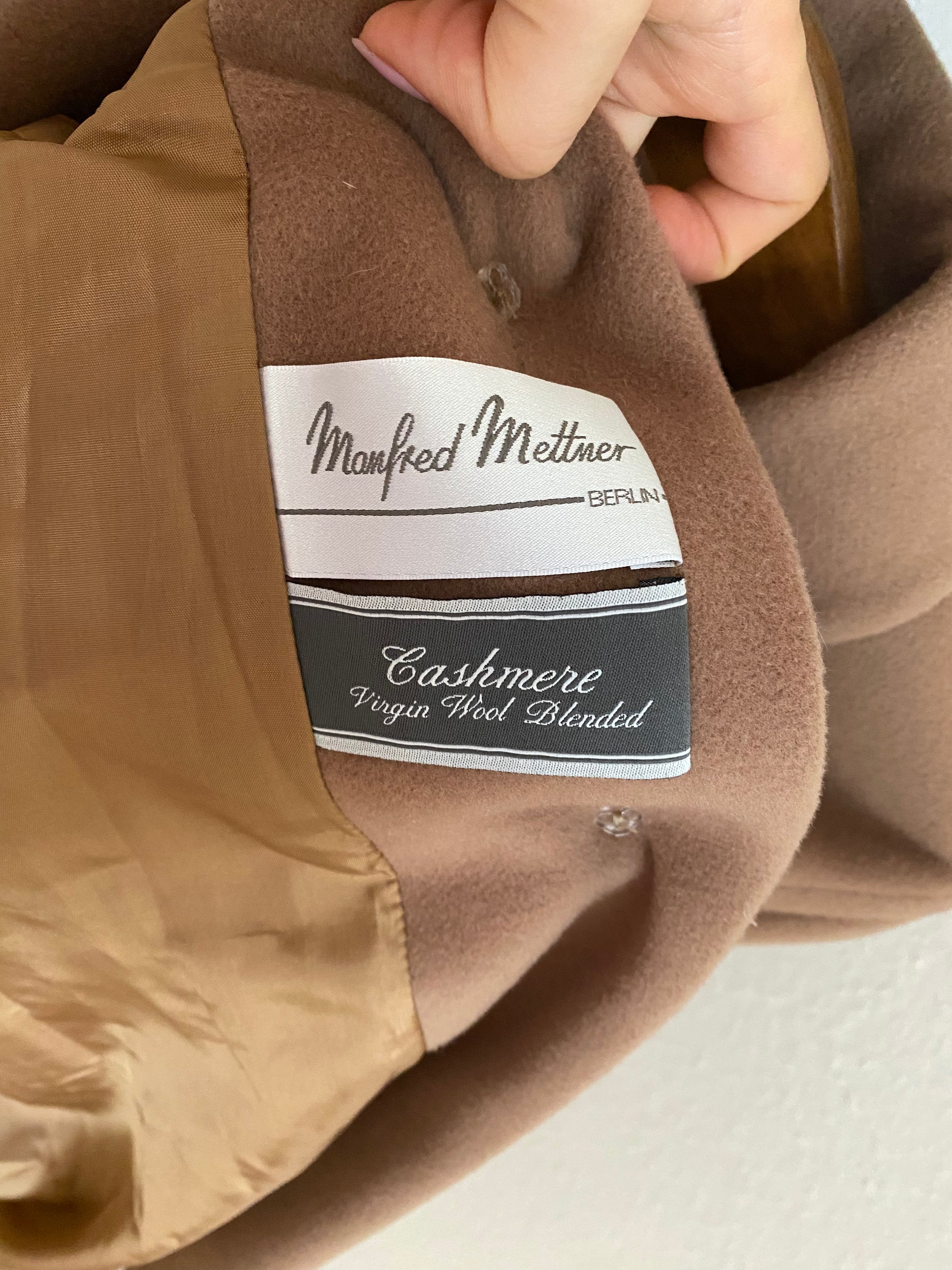 Manfred Mettner Berlin Retro Wollmantel in hellbraun karamell