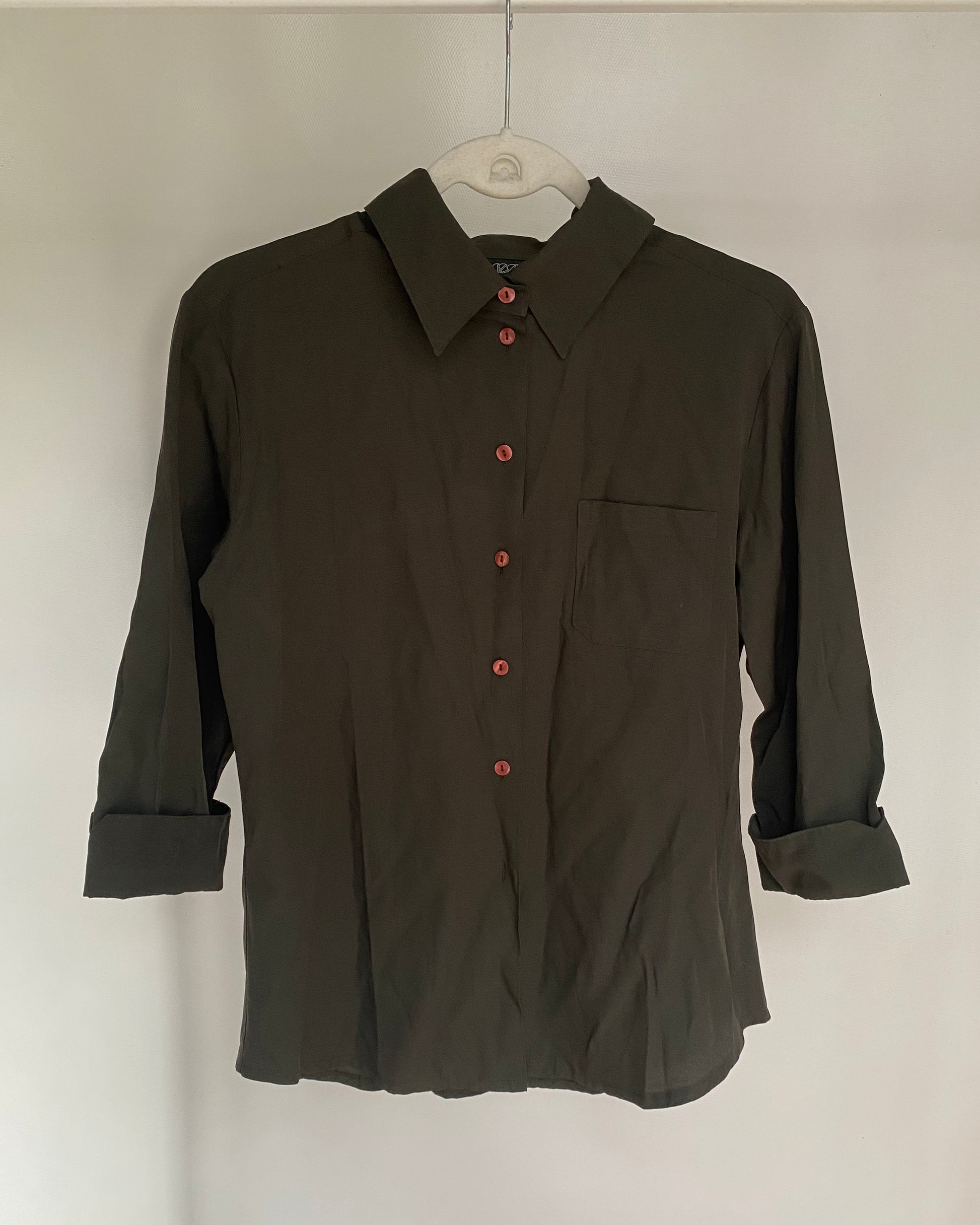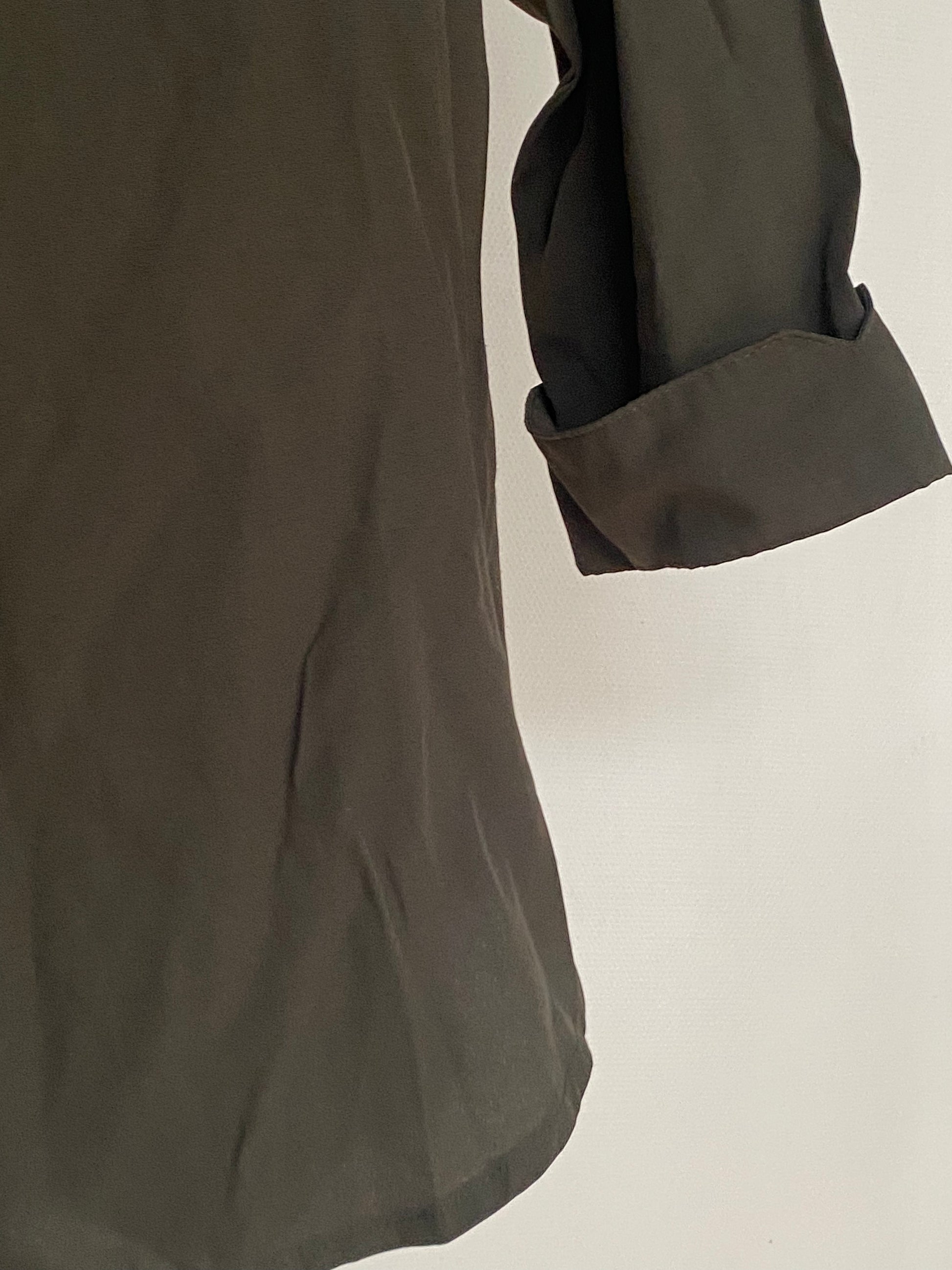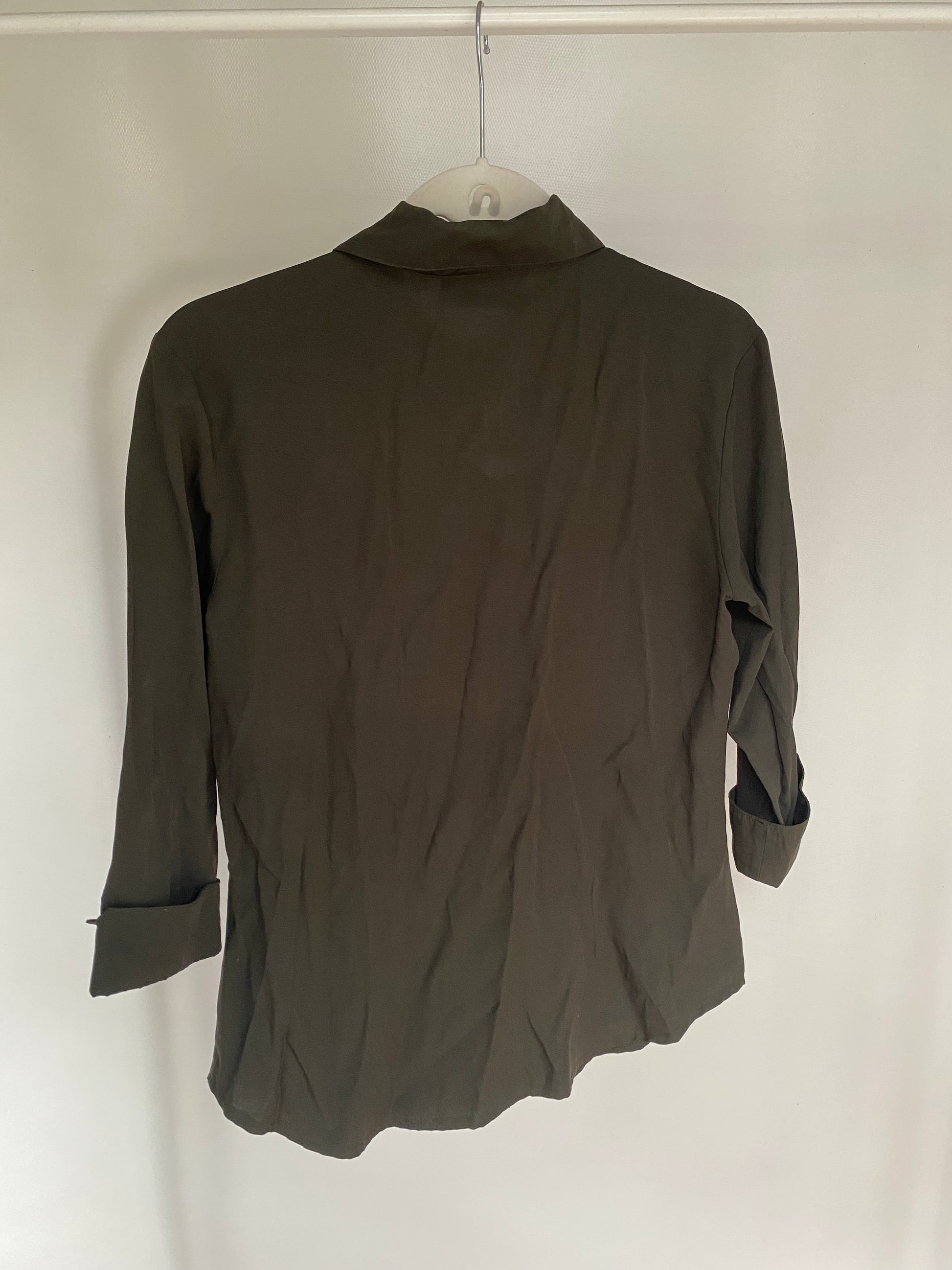 Pre-loved retro orsay Bluse in khaki grün, Viskose-Mix, S