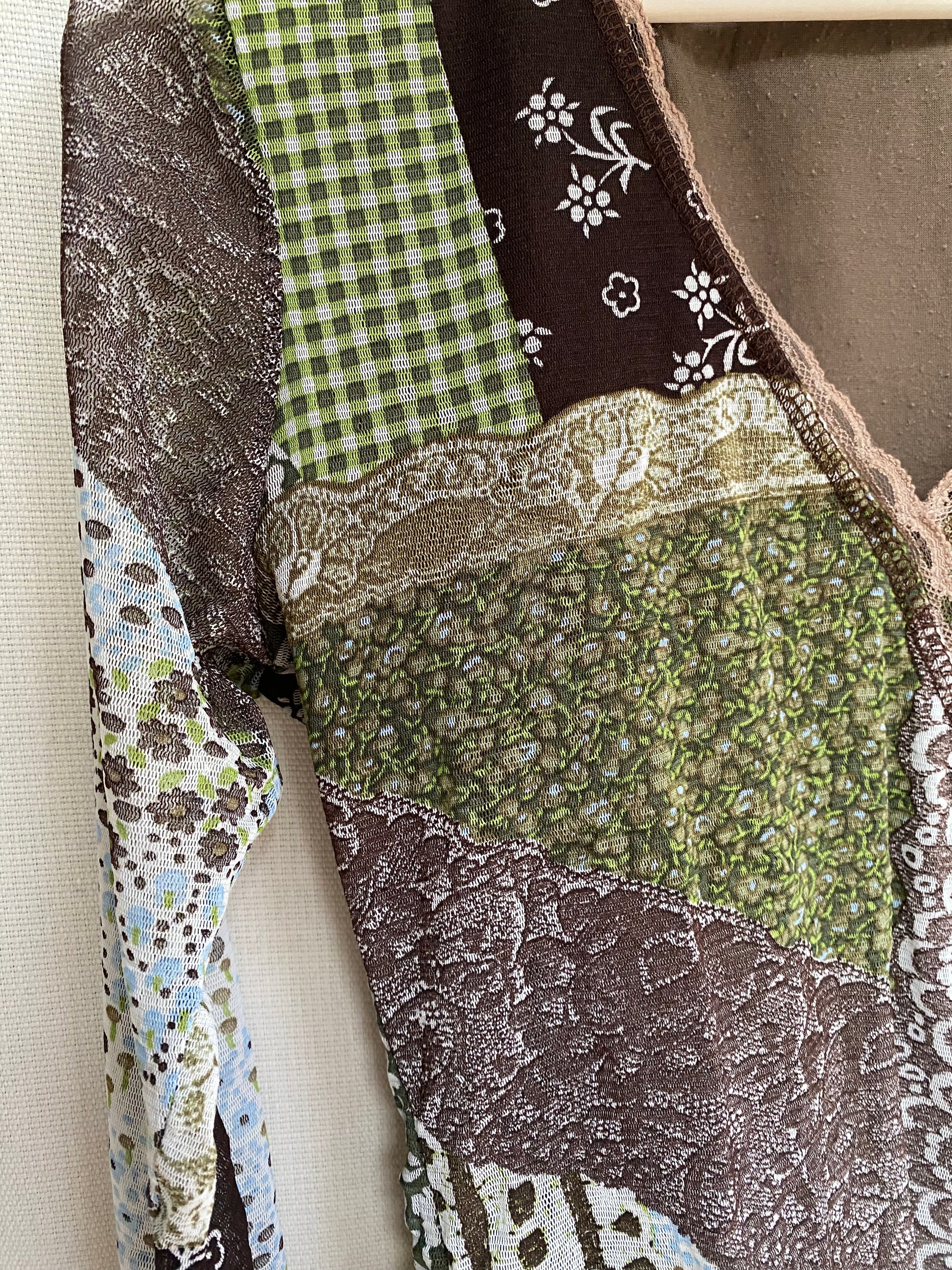 Schönes Longsleeve Shirt halb transparent in braun-grün gemusteret