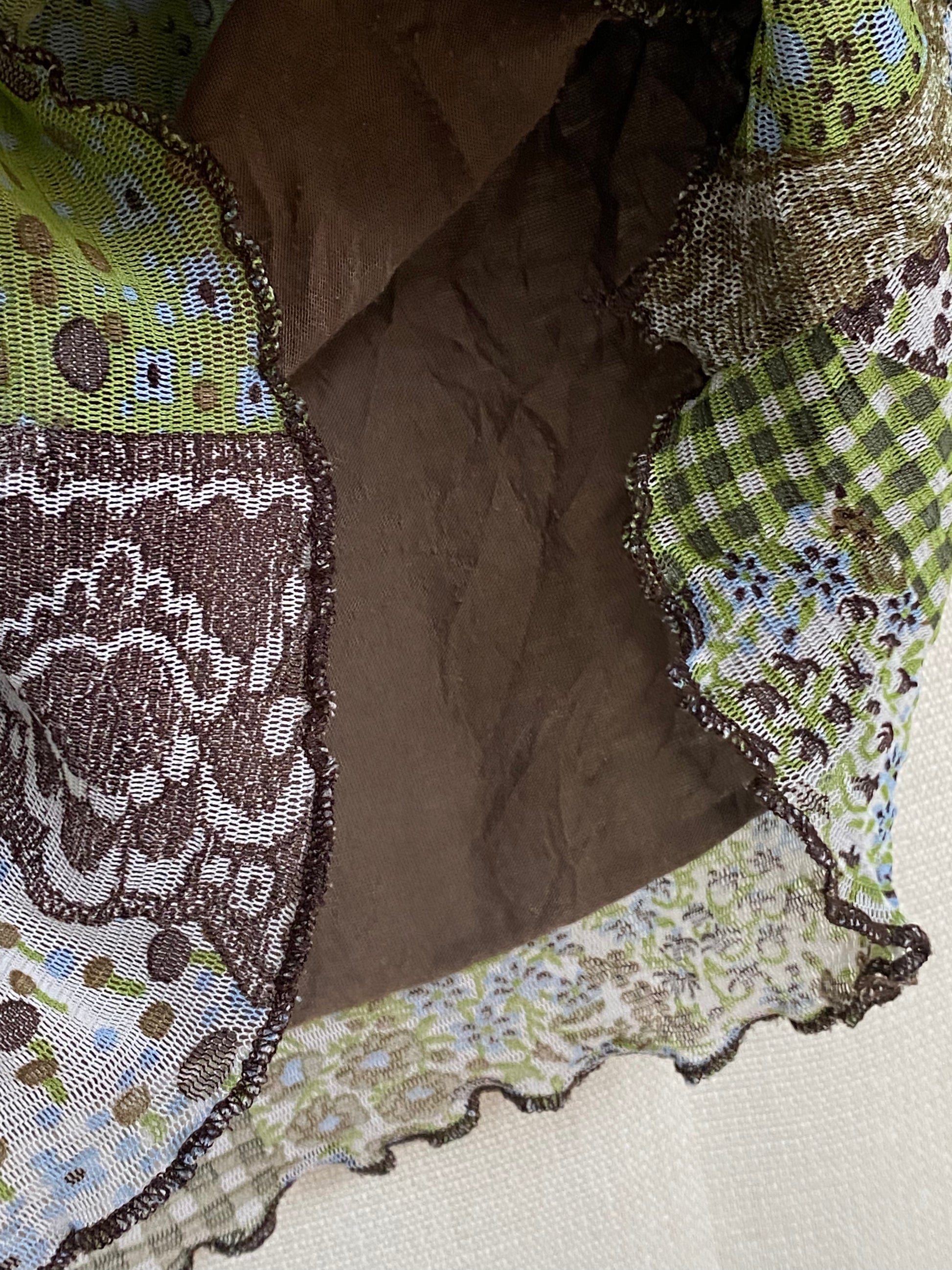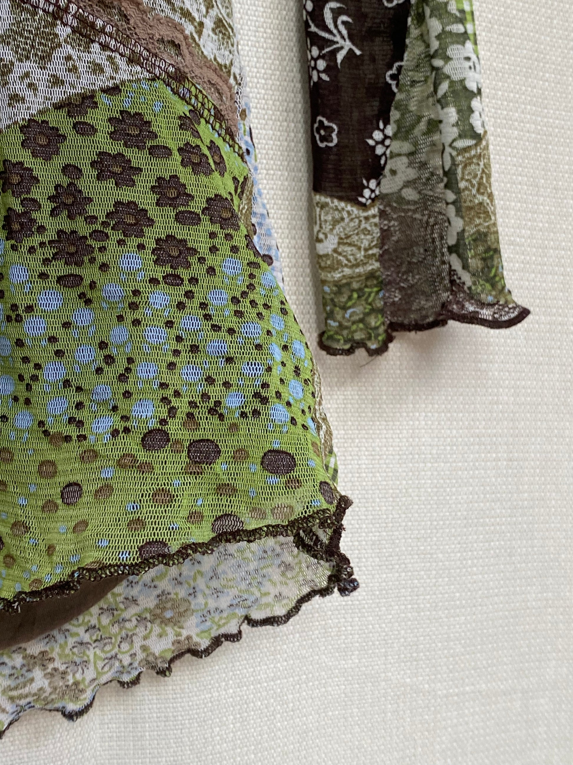 Retro Wickelstil Mesh Shirt halb transparent in braun-grün, S-M