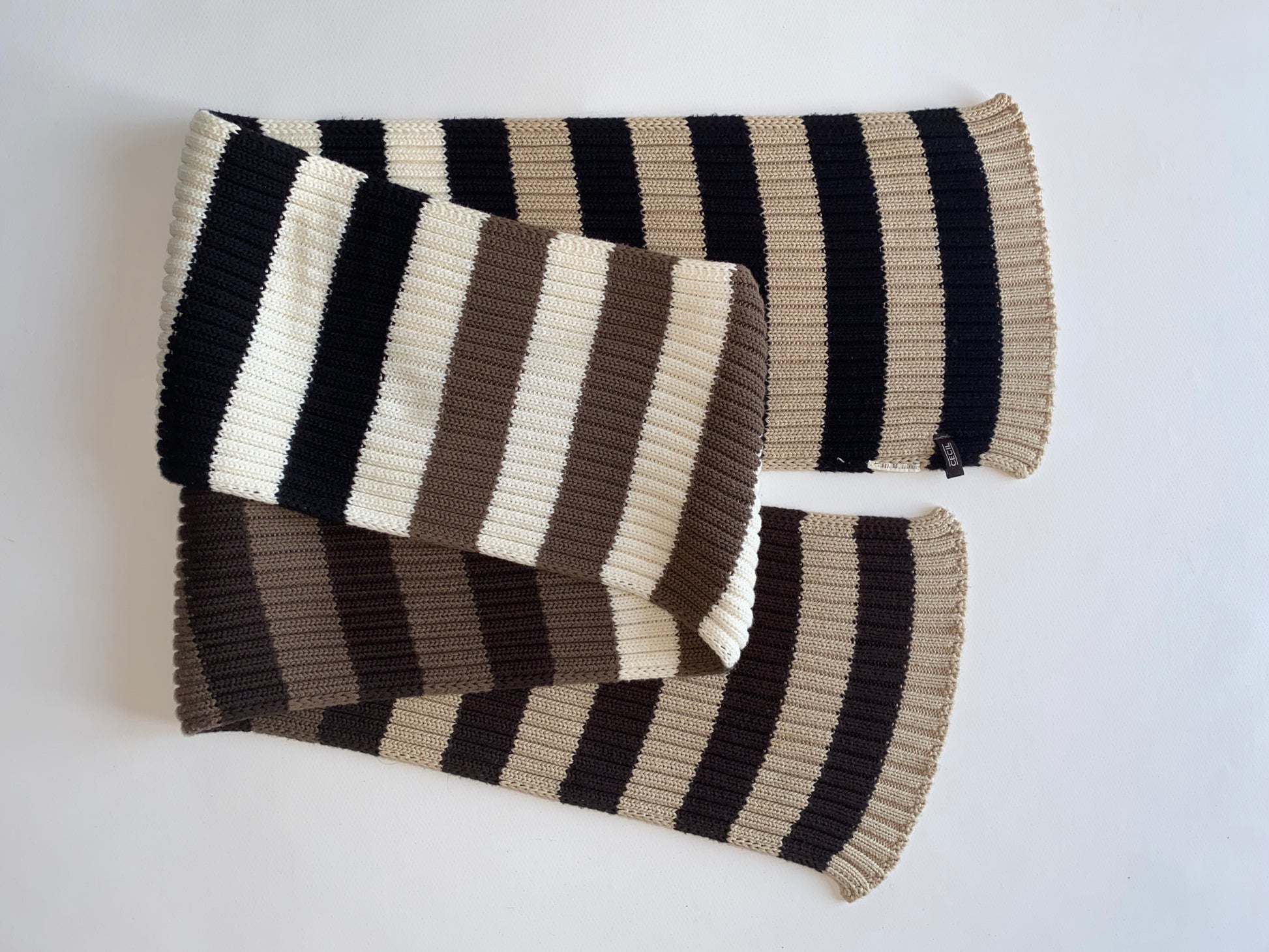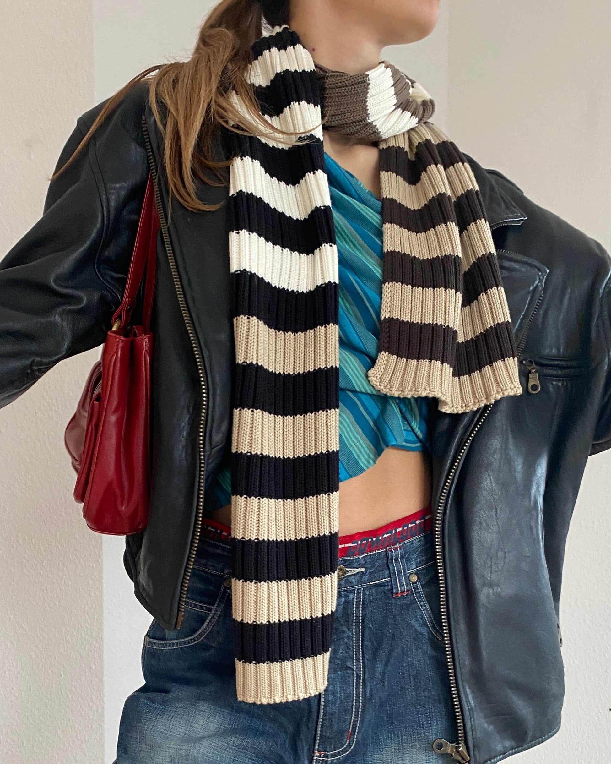 Hübscher Strickschal aus Rippstrick in den Farben braun schwarz weiß beige creme taupe