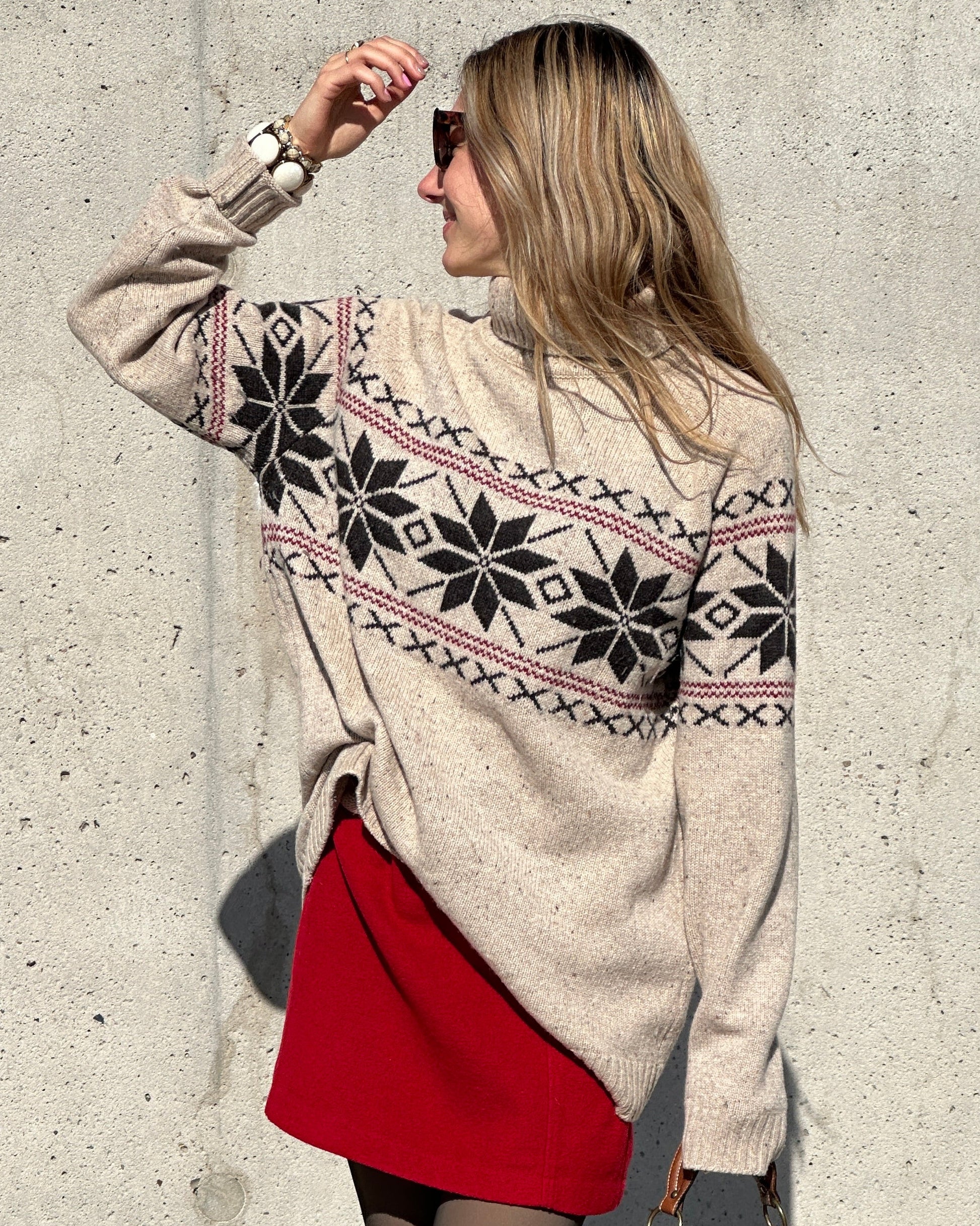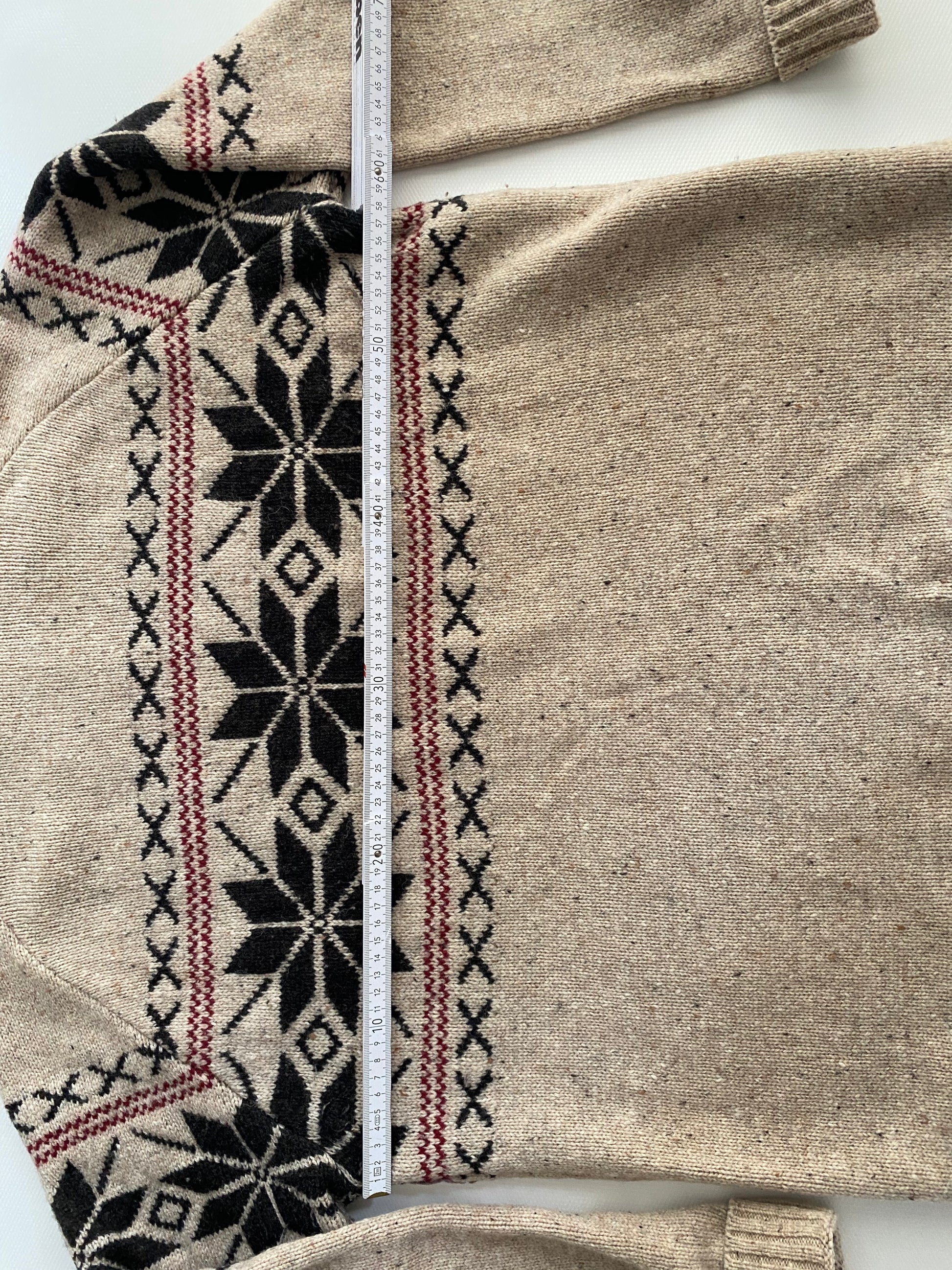 Rollkragen Strickpullover mit Norwegen-Muster beige schwarz rot, S,M