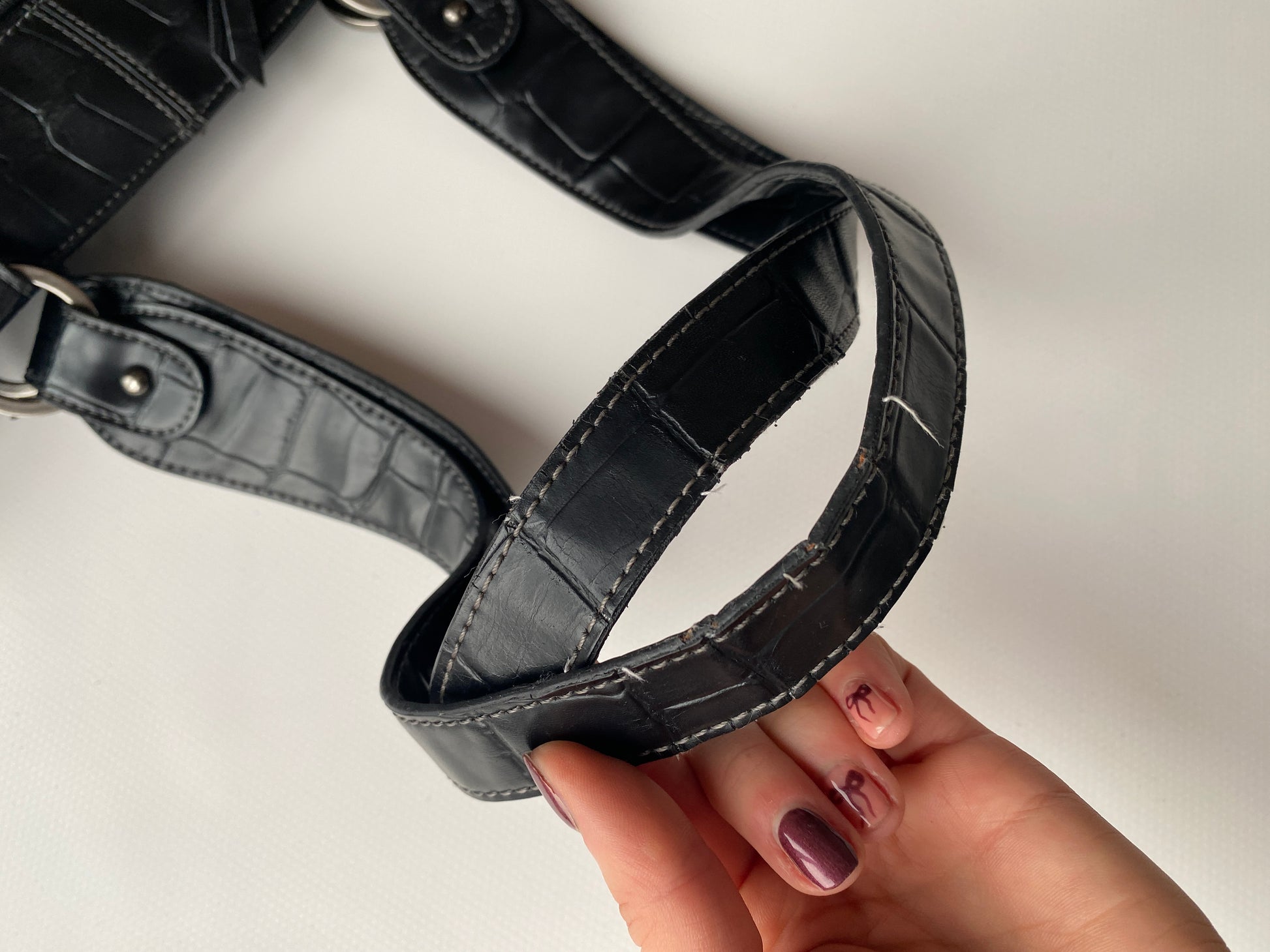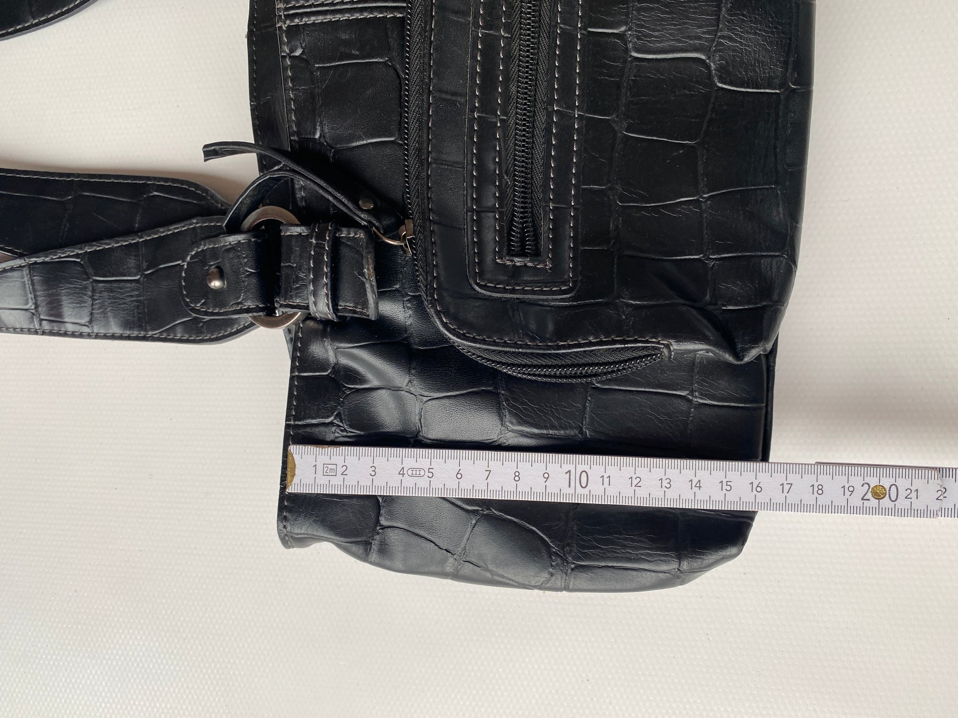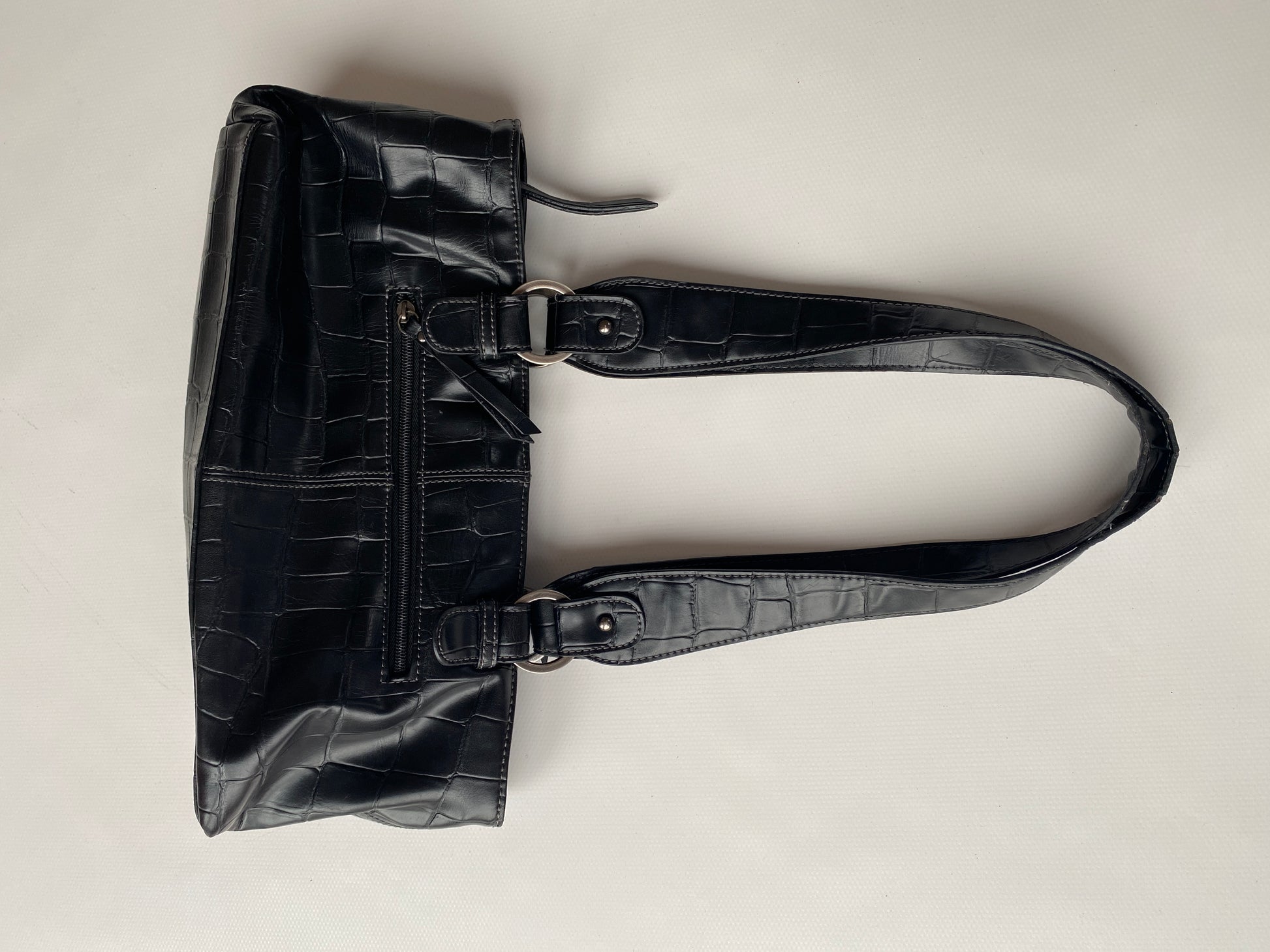 Schwarze Glattleder Handtasche mit Schlangen Struktur Kroko Stil