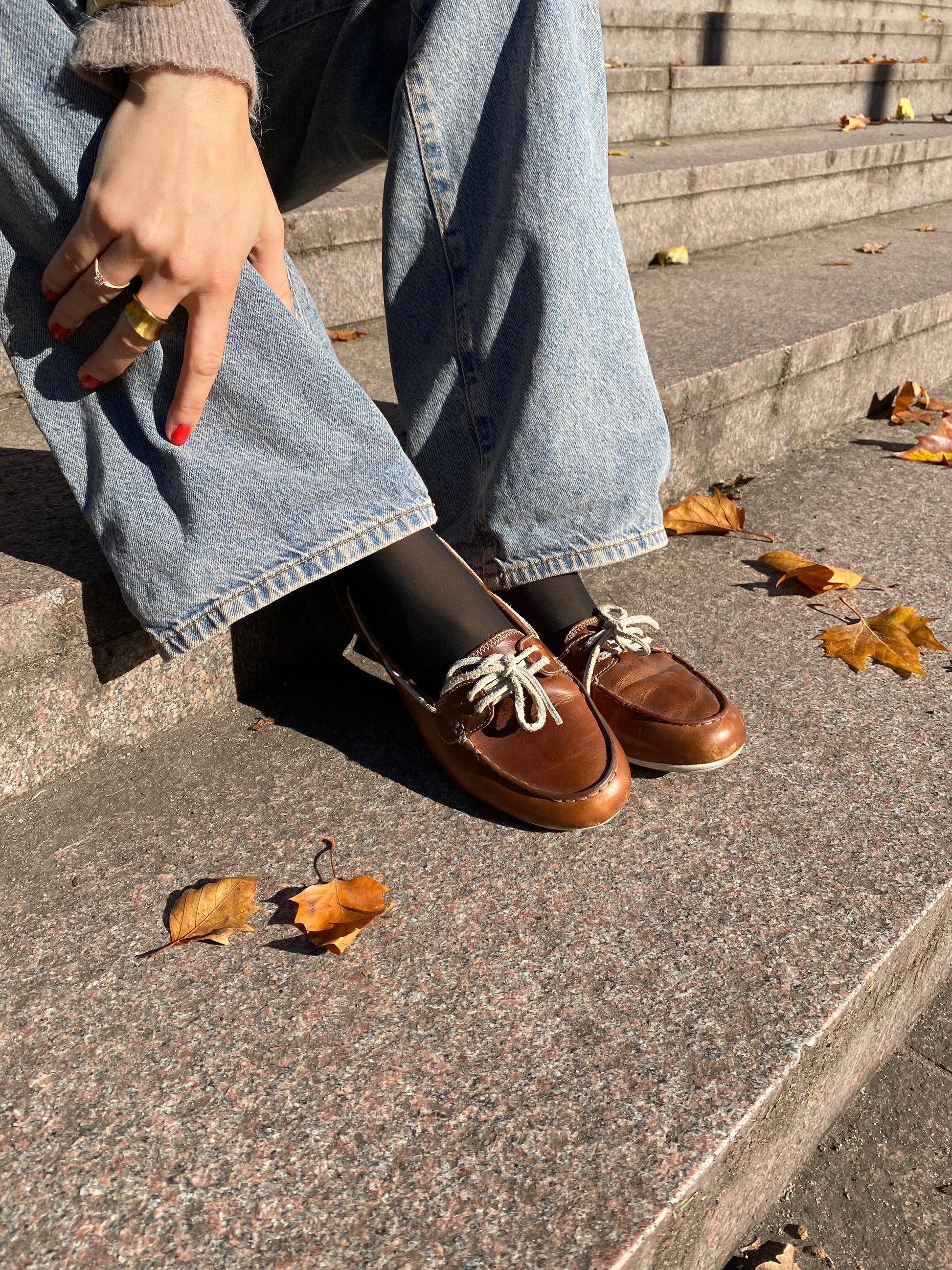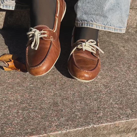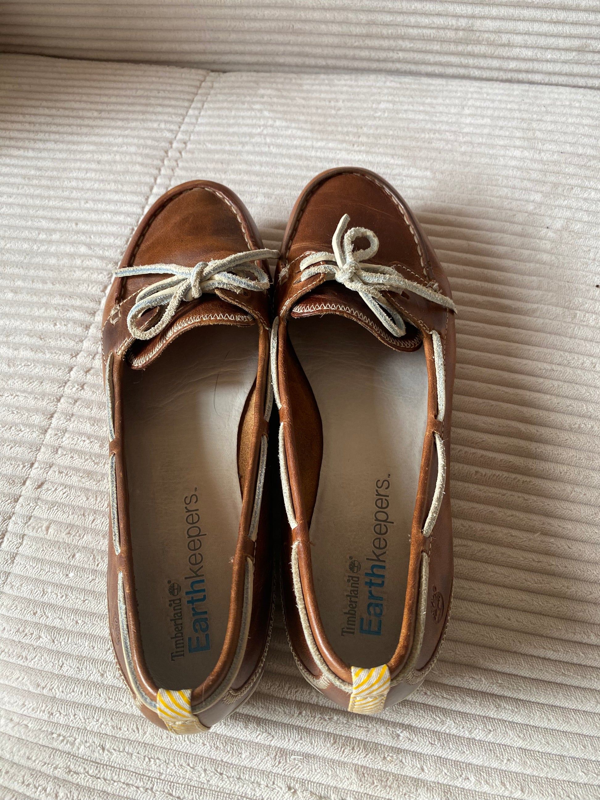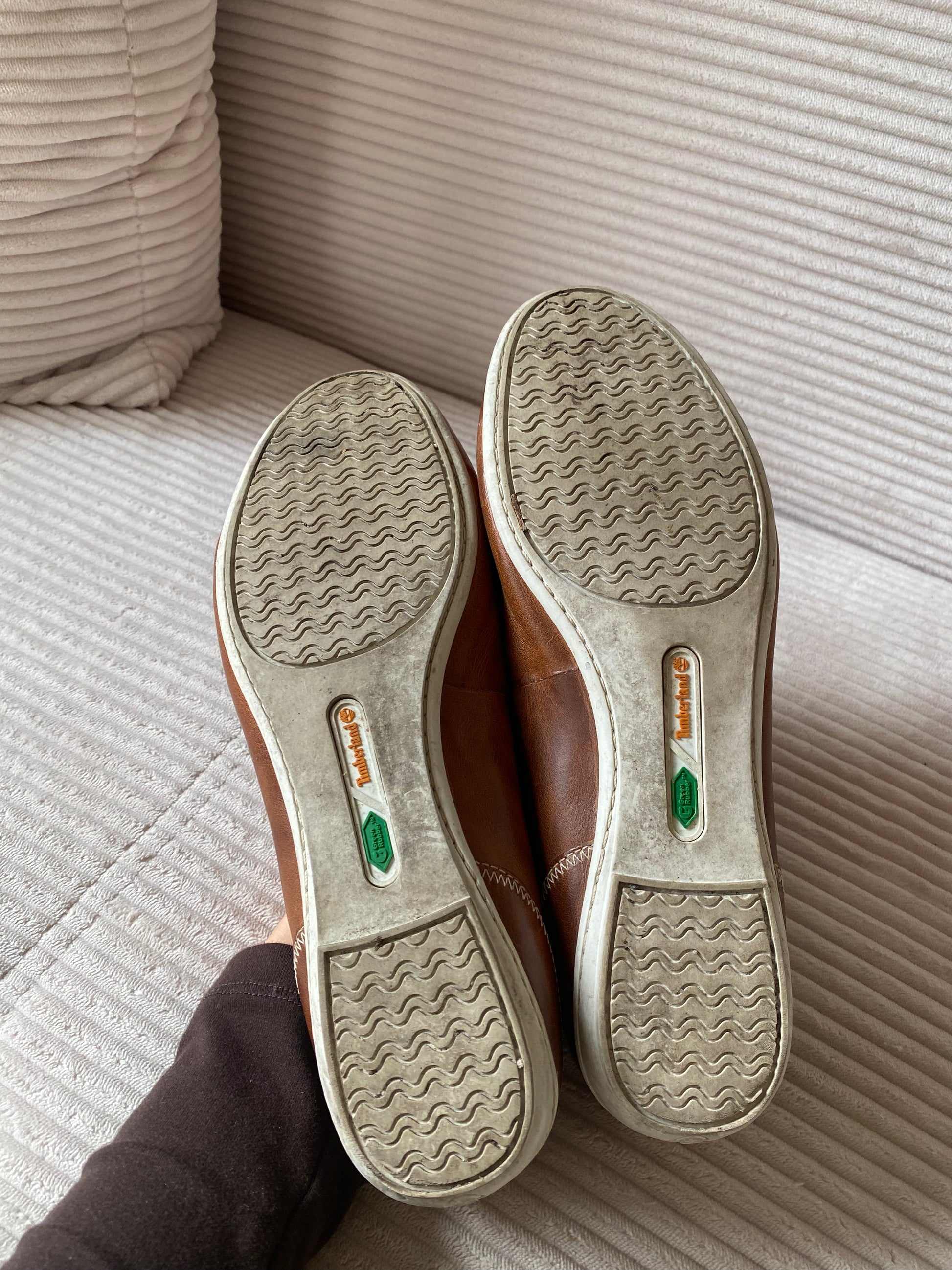 Klassische Timberland-Stil Halbschuhe Loafer im Ballerina Stil mit Lederbändern ohne Ösen.