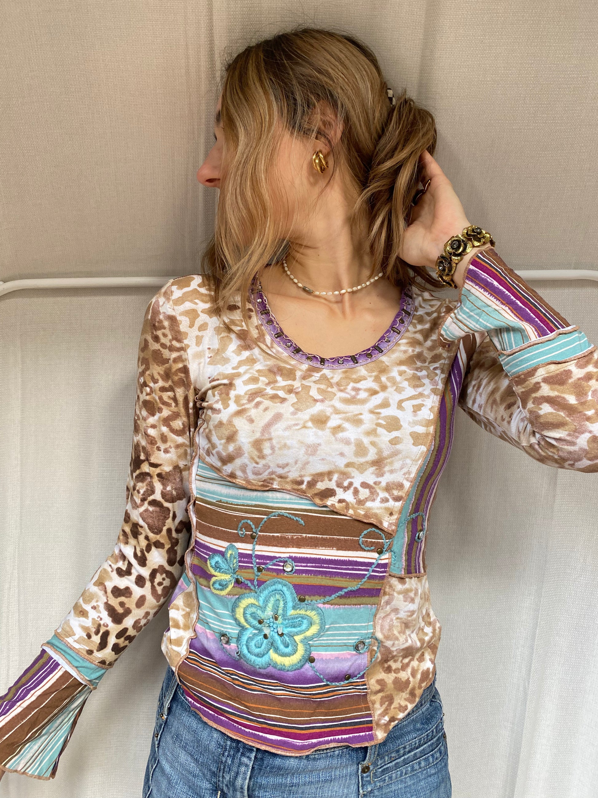 Traumhaftes multicolor verziertes Longsleeve Trompetenärmel, S