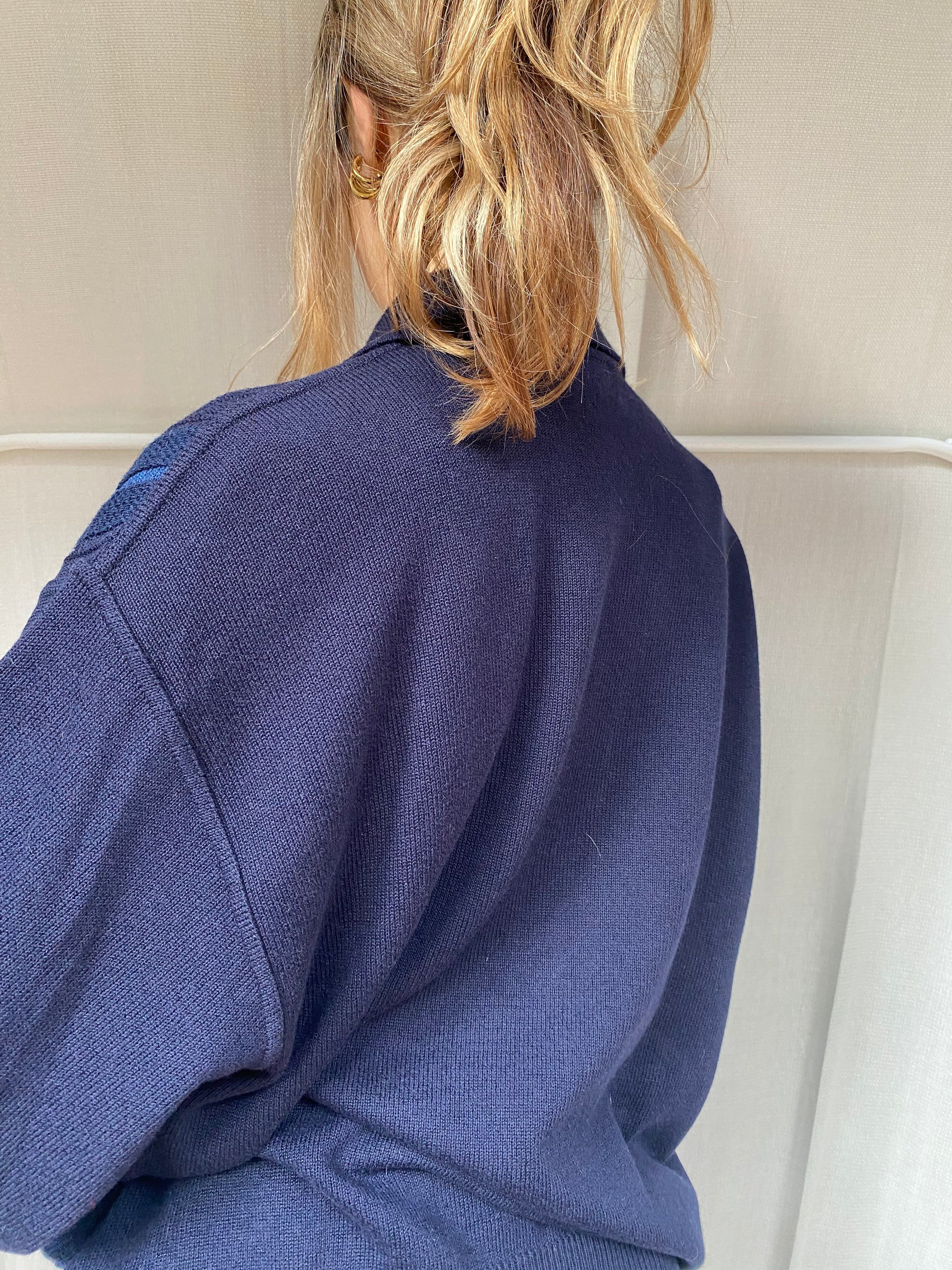 Basic Sweater in navy marine dunkelblau mit Details, strukturiertes Muster mit hellblau Akzenten