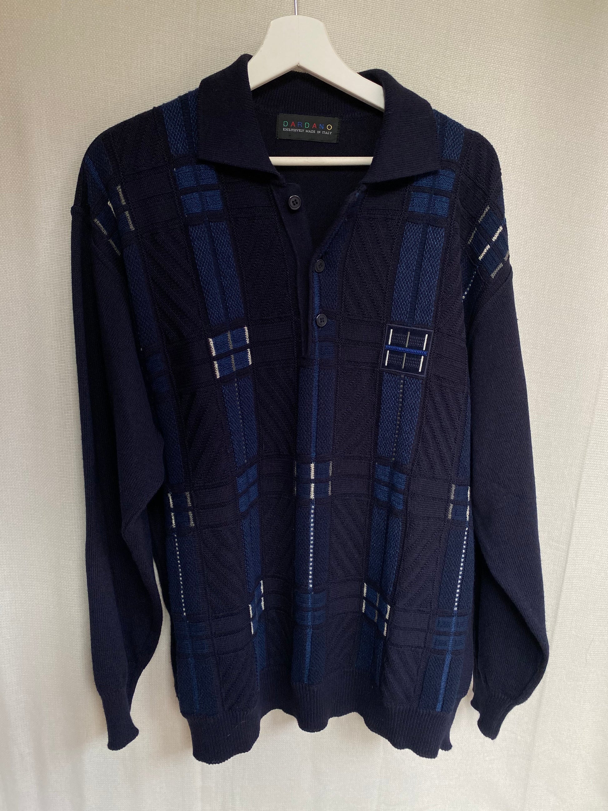 Vintage Dardano Strickpullover Hemd-Kragen, mit 3D Knit, M, L