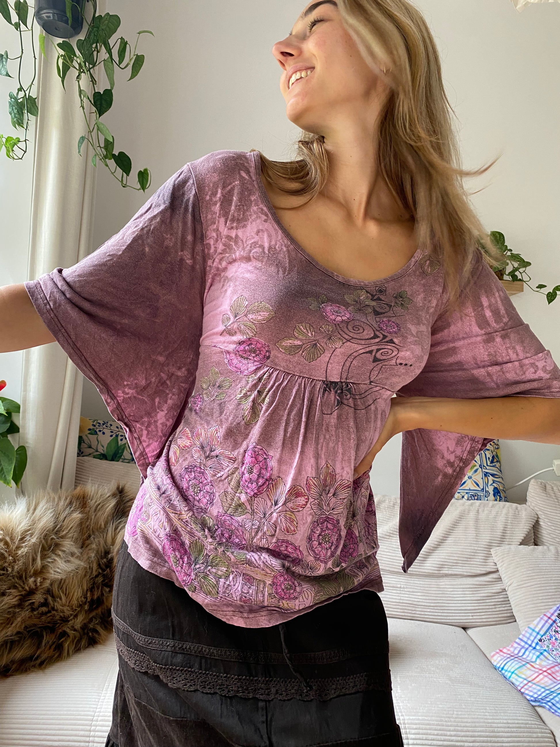 Vintage Fairy Tunika in lila-rosa, Schnürung, Viskose, S, M, L