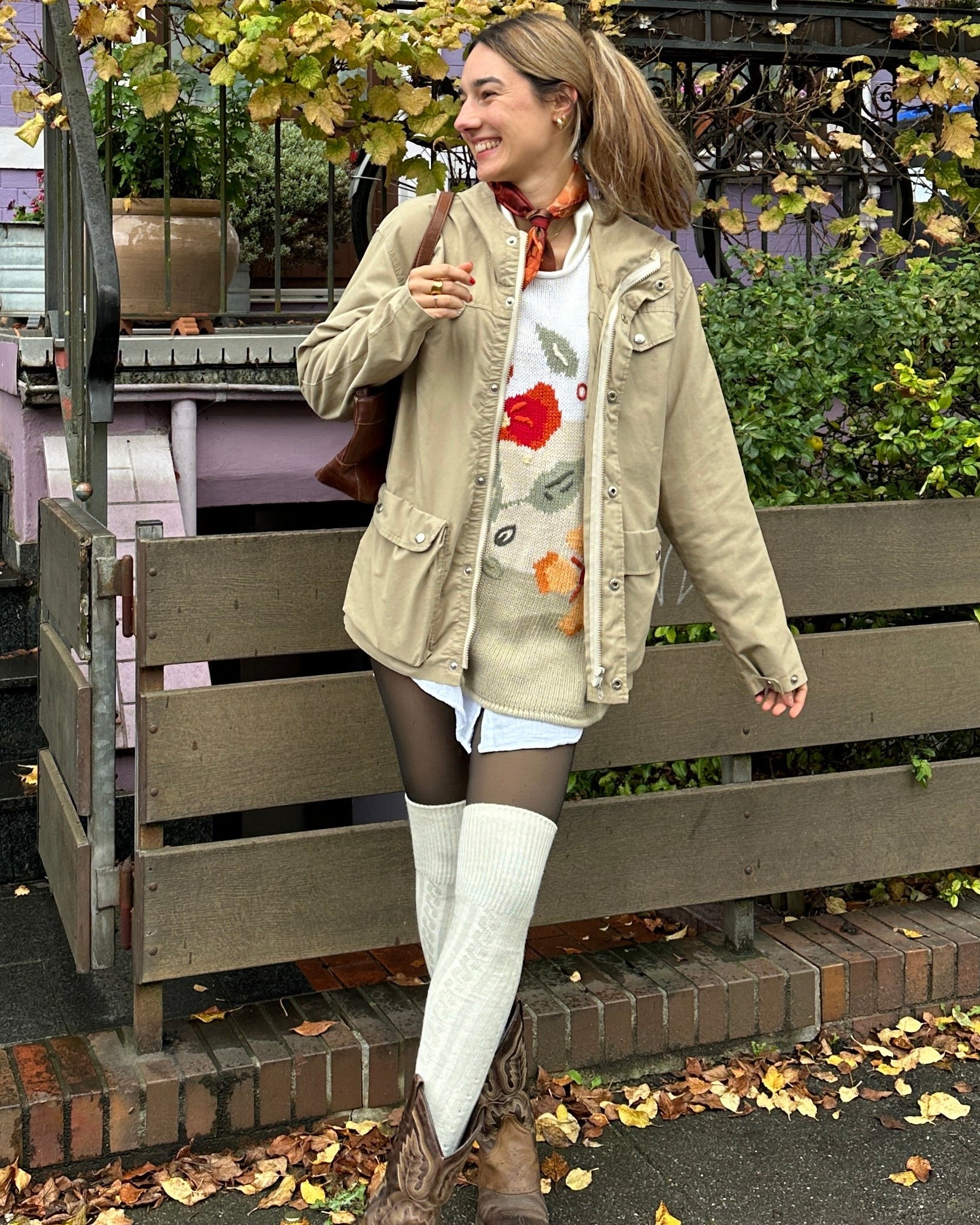 Retro Sweater in weiß beige sand mit Blumen