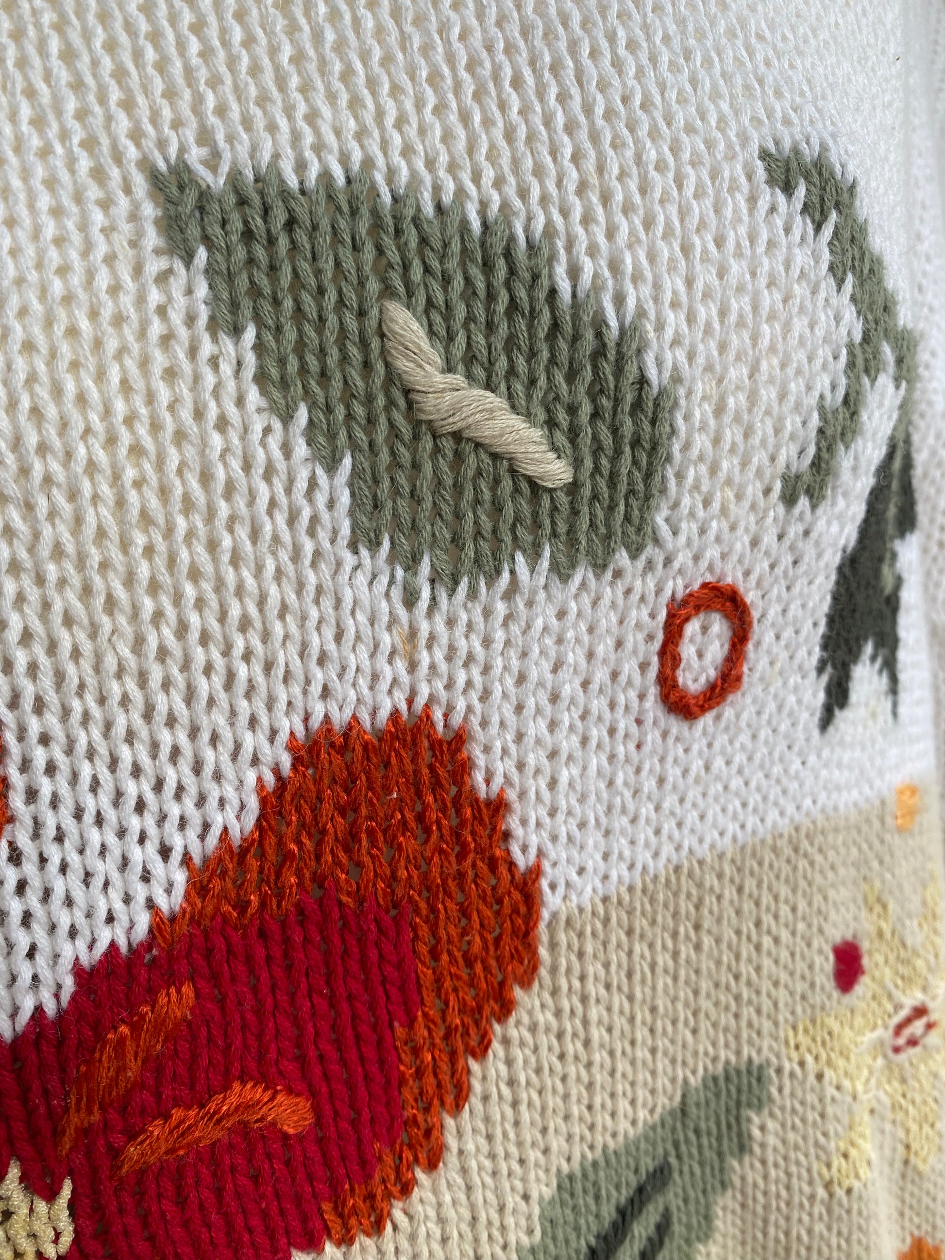 Vintage Grobstrickpullover mit gestickten Blumen in beige, oversize XL