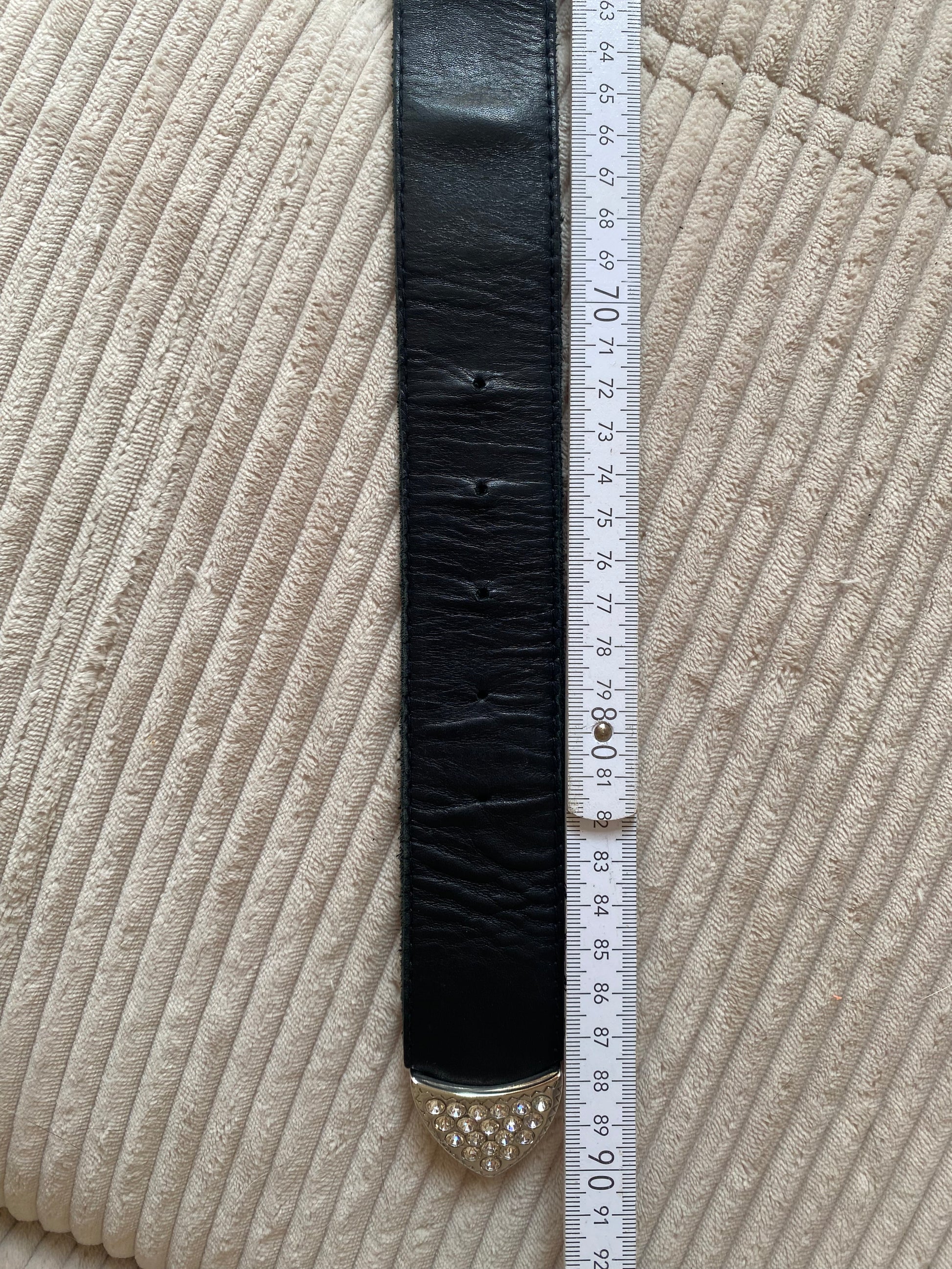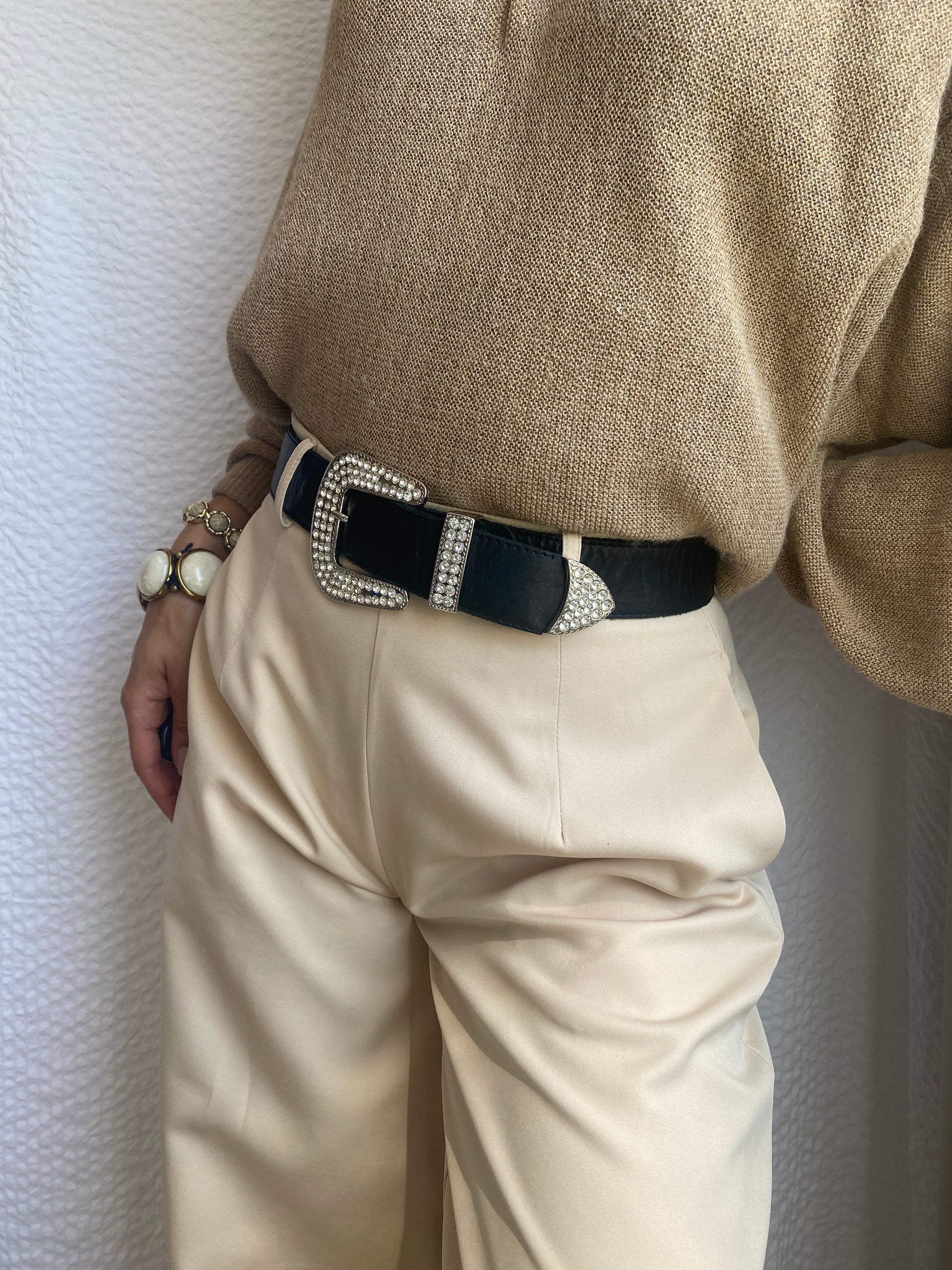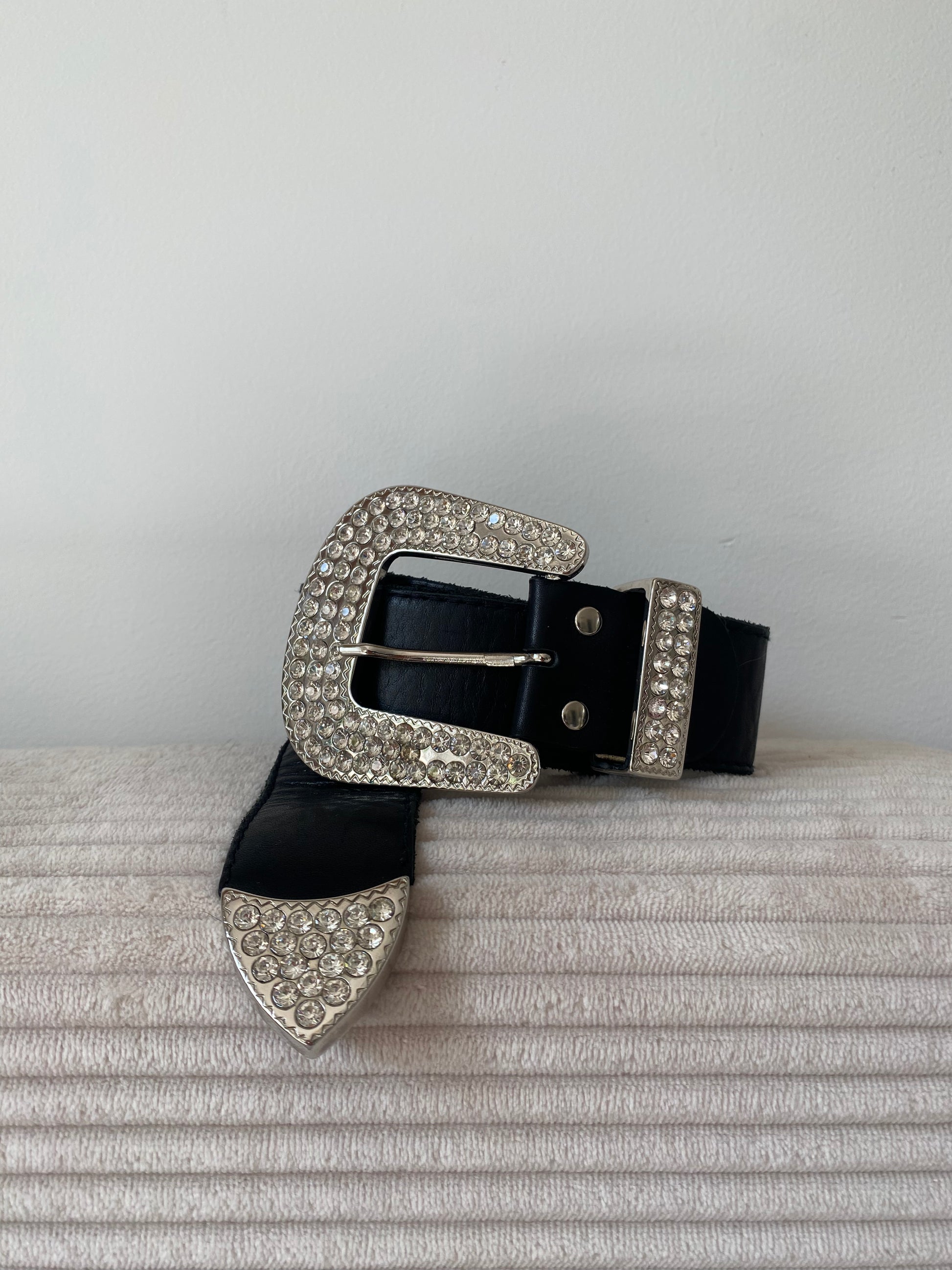 Vintage Strass-Steine Glitzer Gürtel in schwarz aus Leder, TW 80