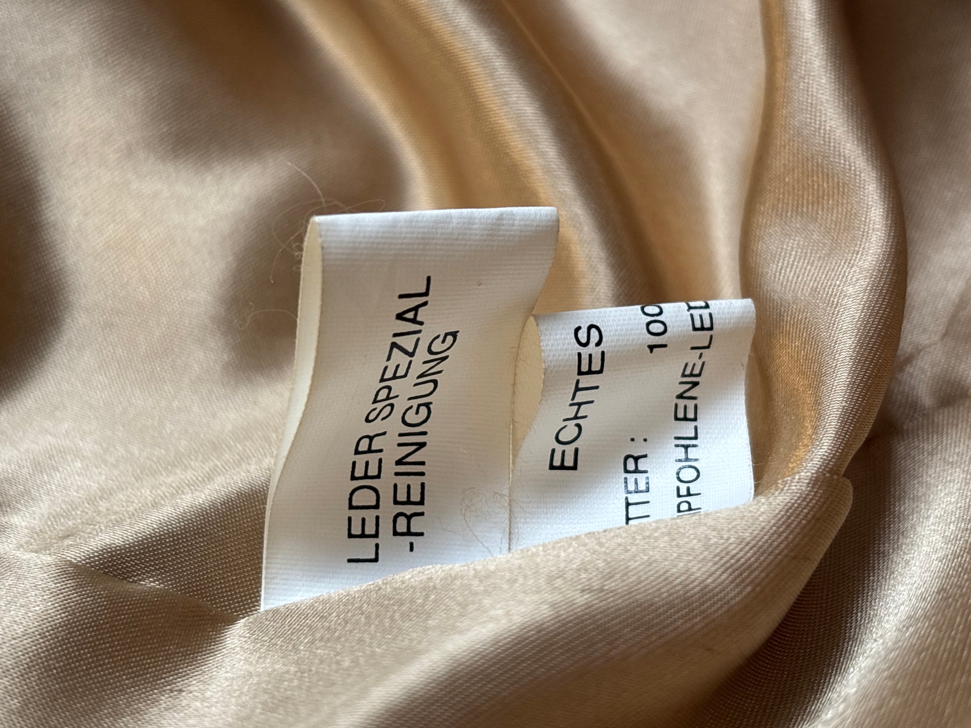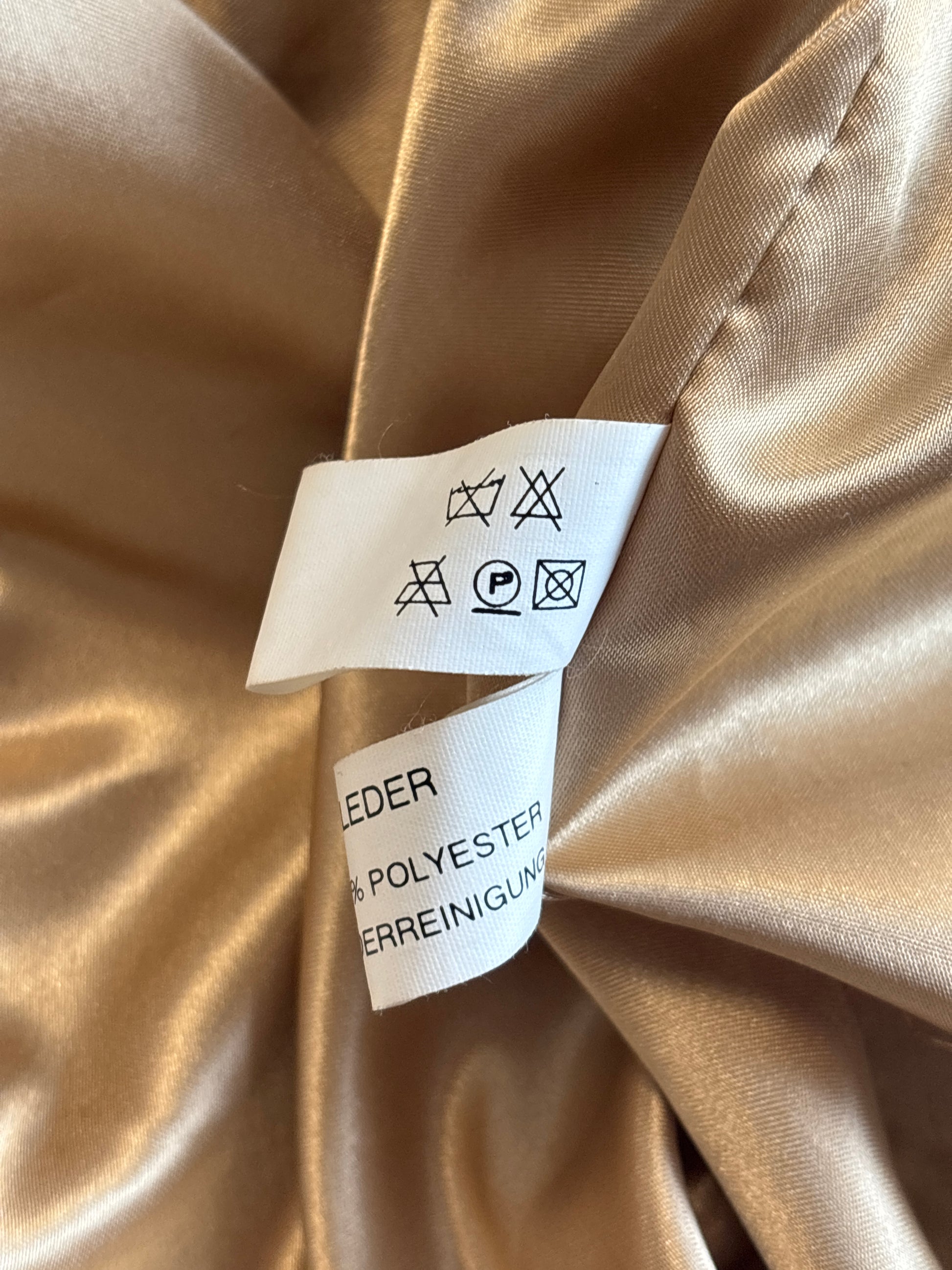 Weiche und gemütliche Echtleder Jacke, außen leicht rau im Wildleder Stil. Hellbraun senfgelb gold