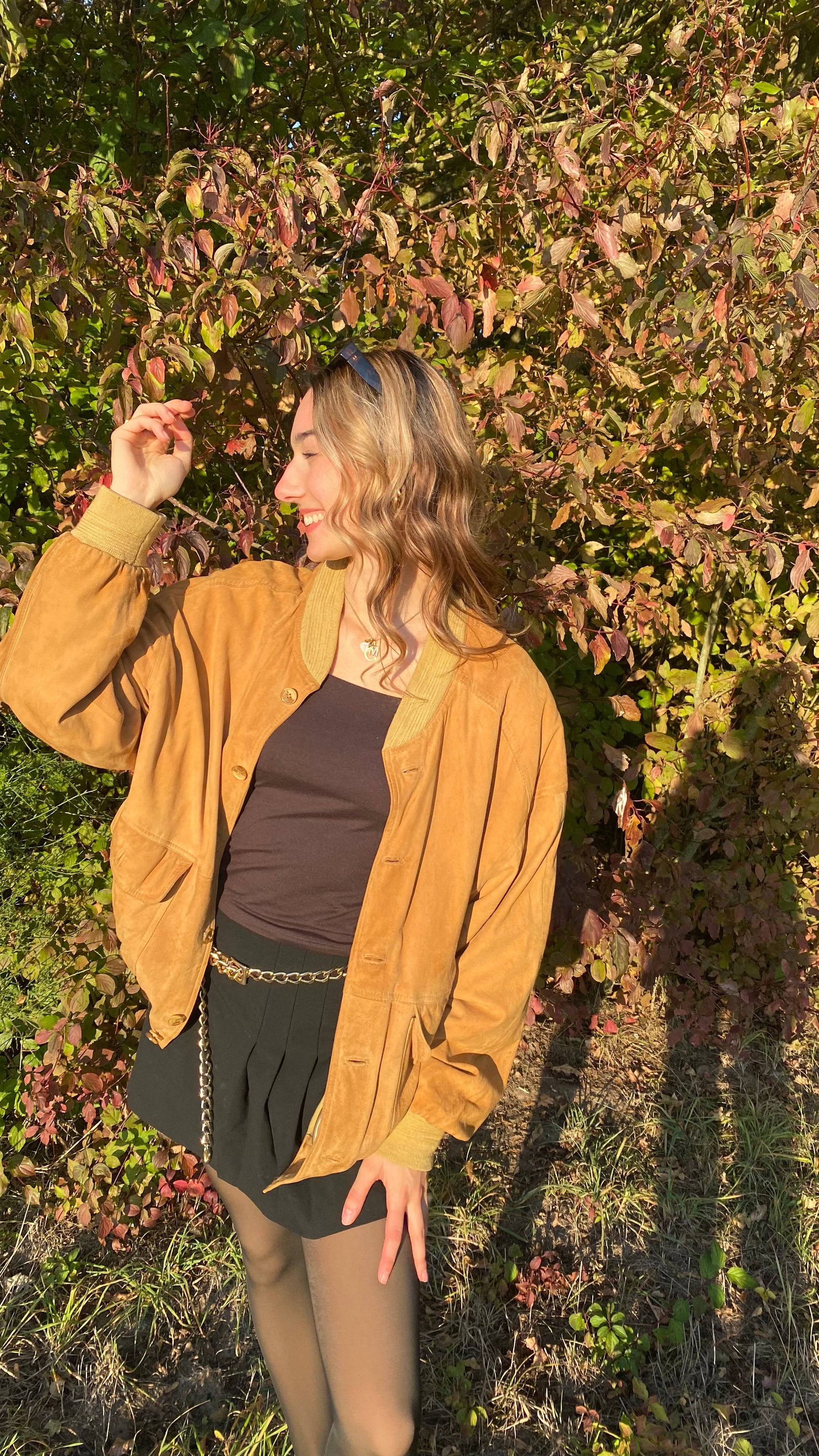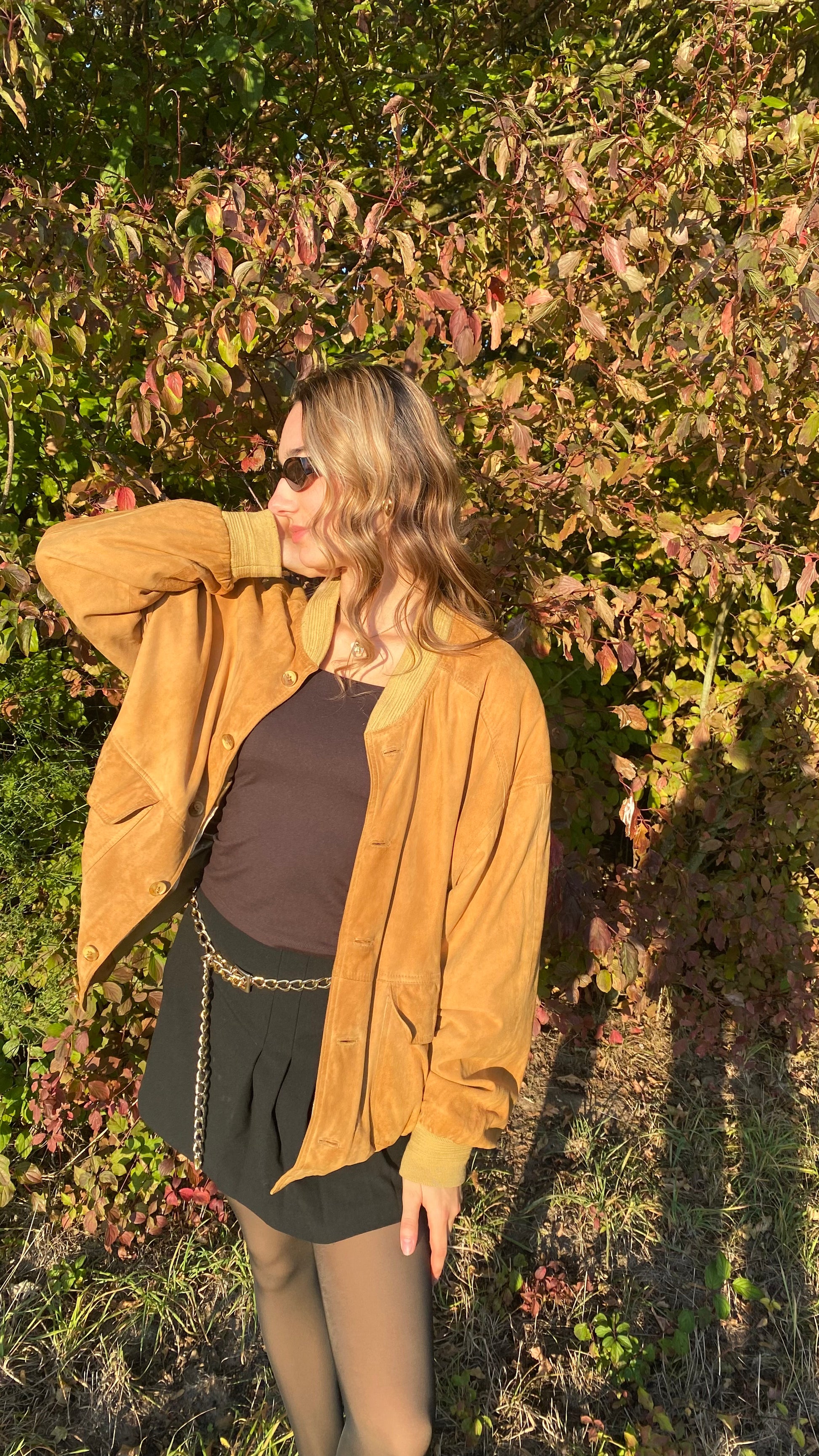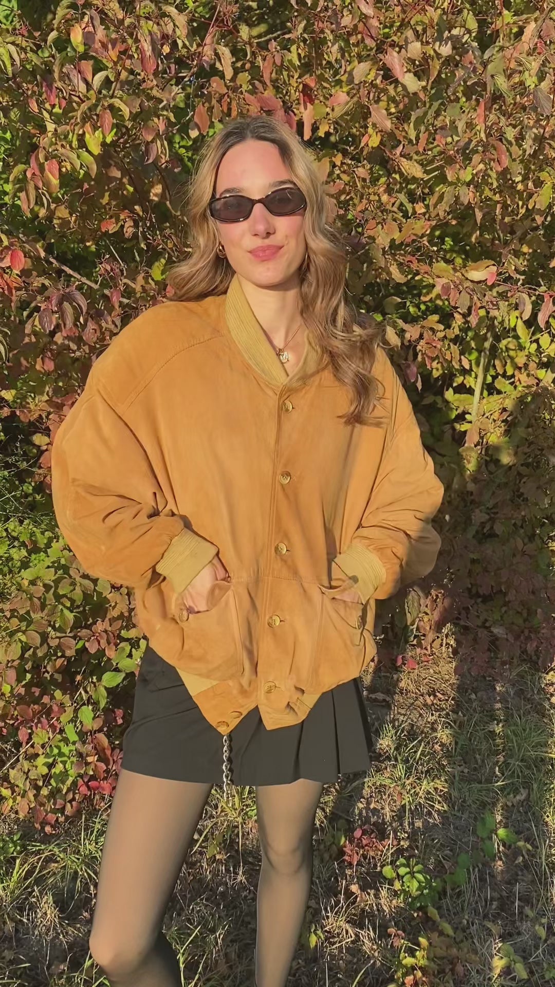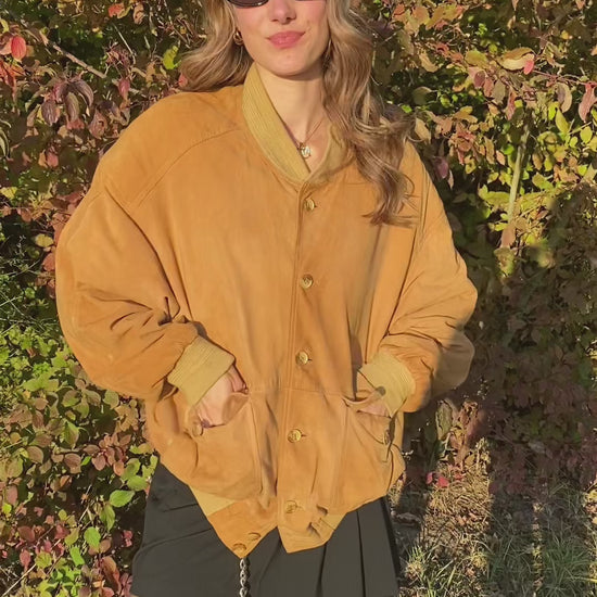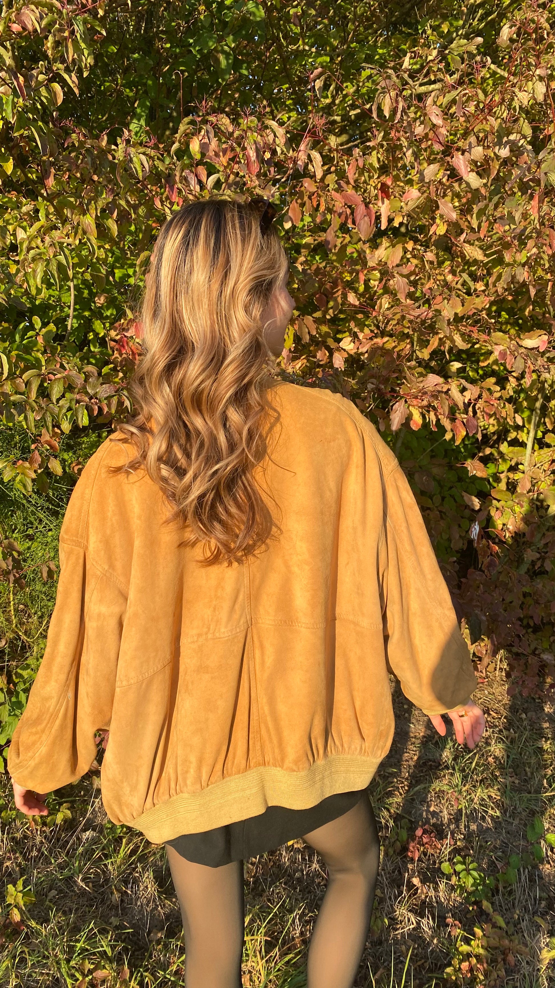 Wildleder Jacke 90er in hellbraun senfgelb mit Taschen, oversize S,M,L