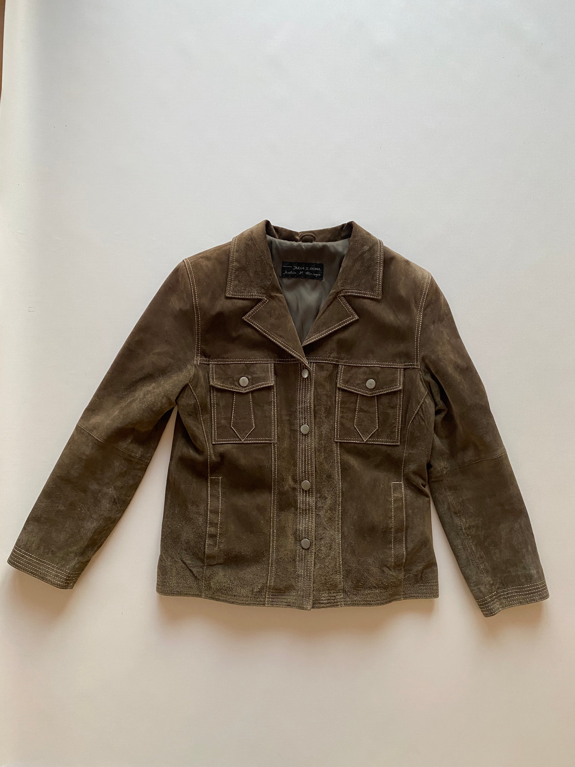 Wildlederjacke in oliv khaki, Kragen Blazer Stil, Julia S. Roma, S, M